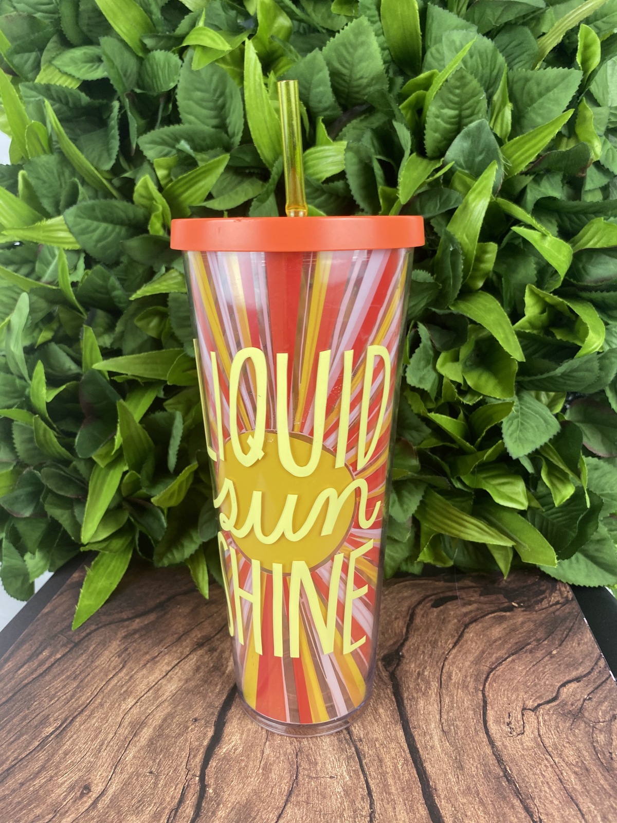 Starbucks RARE Tumbler Liquid Sunshine Red Orange Beam Venti Cold Cup 24oz NEW