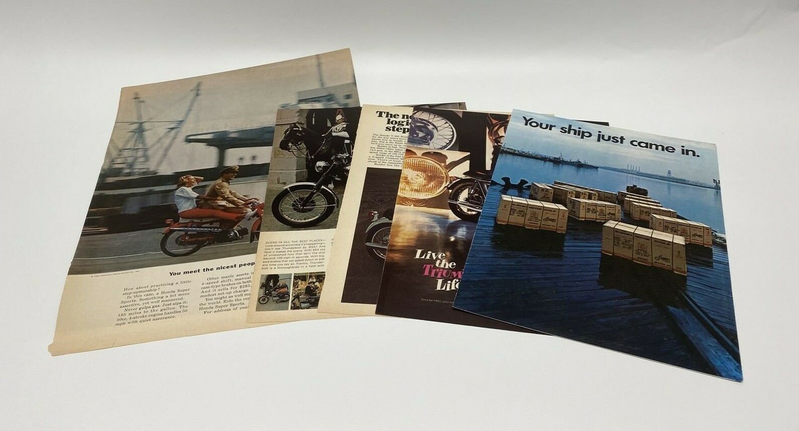 Lot 4 Vintage Motorcycle Magazine Advertisements Honda, Suzuki, Triumph 1970s