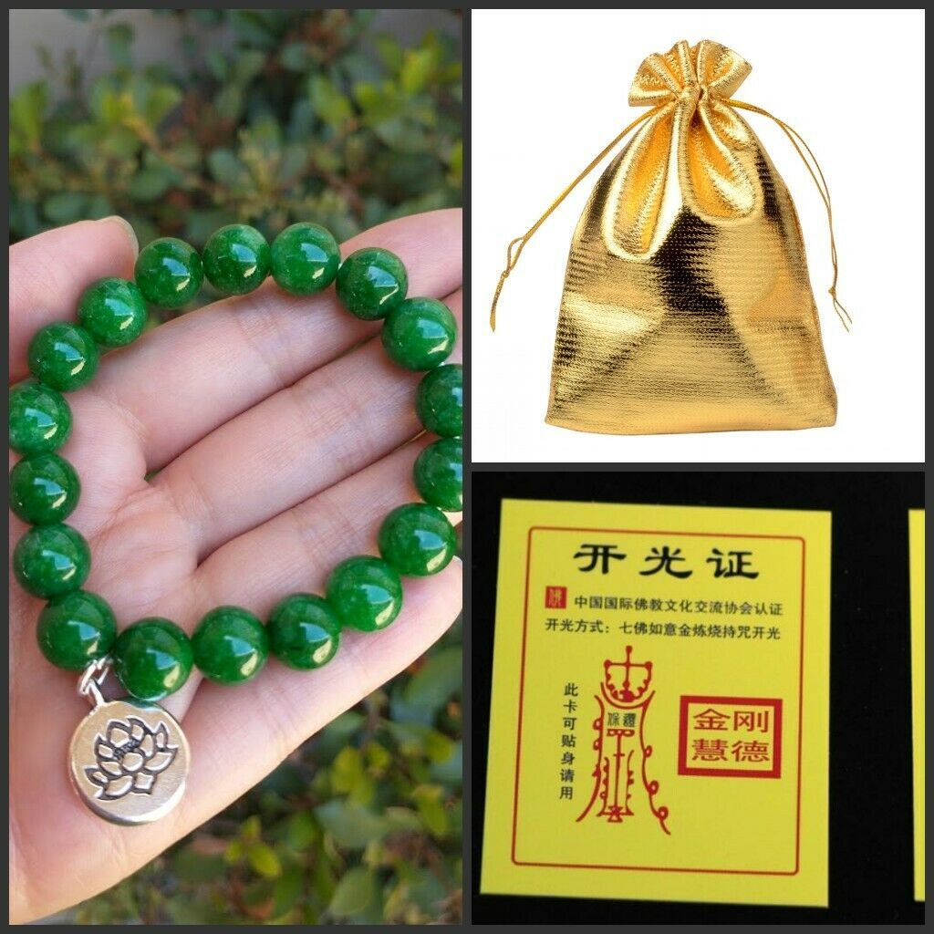 Blessed! Tibetan 18 10mm Green Jade Beaded Lotus Amulet Mala Bracelet -6"