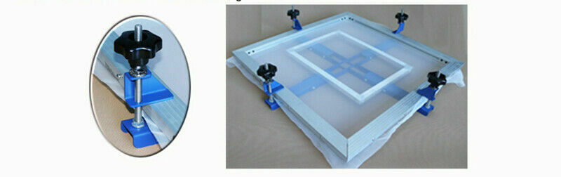 8. Press the screen frame with the clamp part, rotate the handle to increase the pressure ,and the screen frame with mesh will close - fitting combination further increases tension
