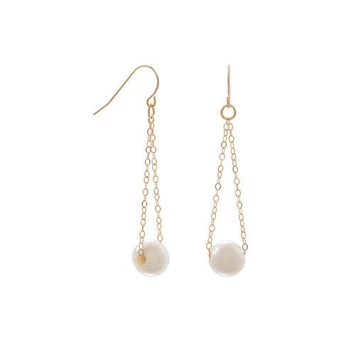 14 Karat Gold French Wire Earrings with Floating Cultured Freshwater Pearl