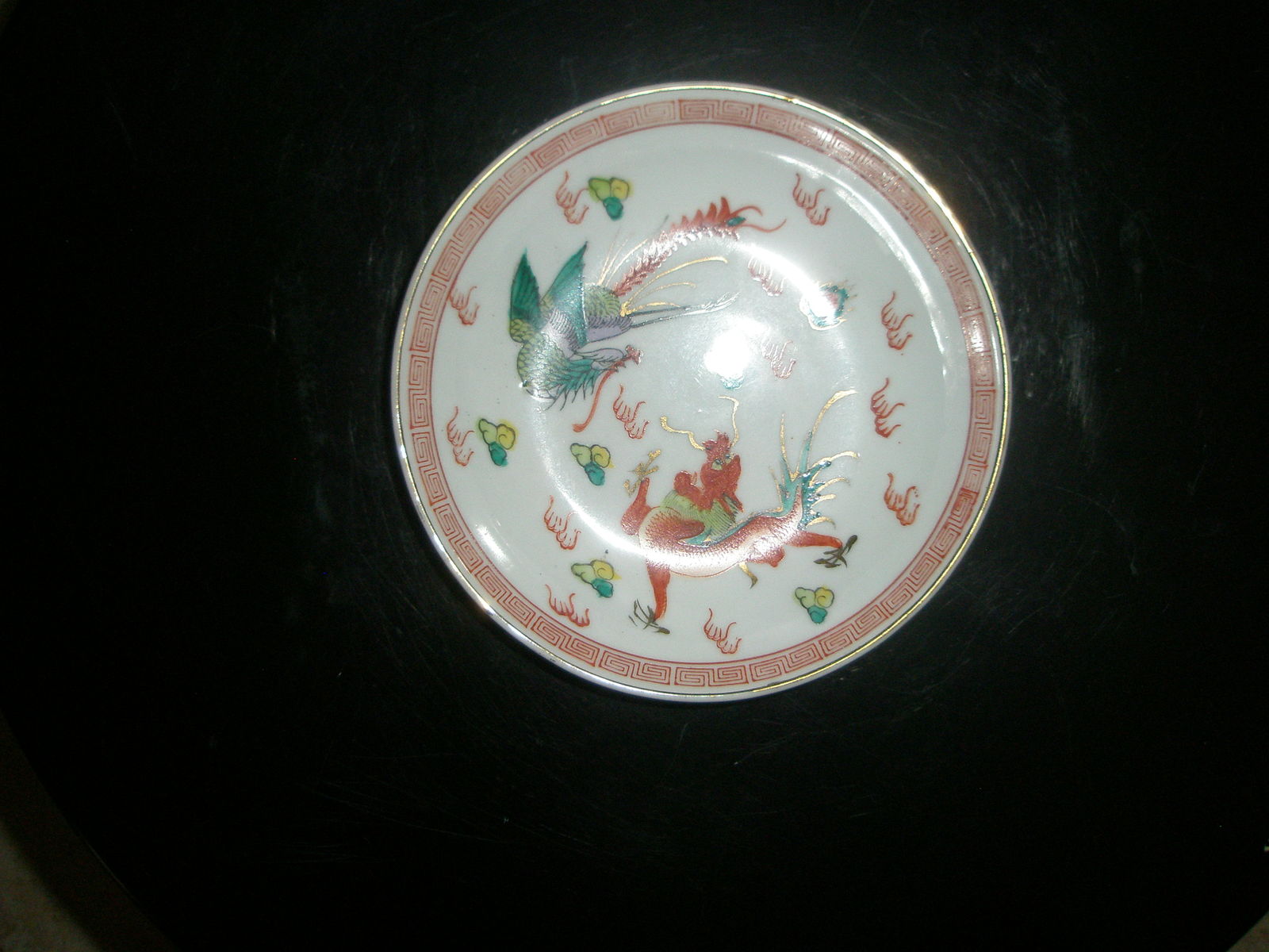 Vintage Chinese Fine Porcelain Red Dragon and Phoenix Bird Bowl Hand Painted
