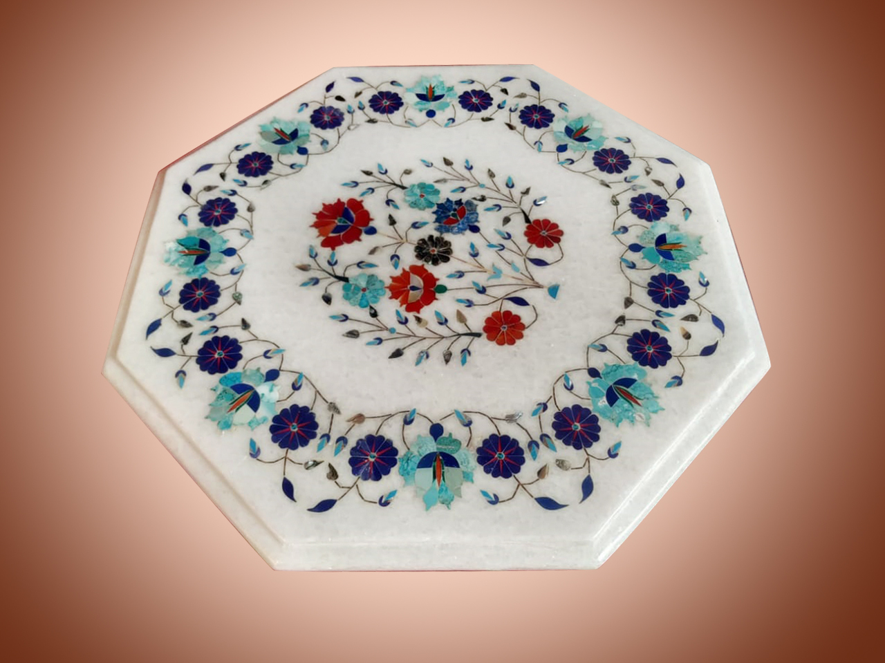 Size: 15"x15" Inch Material: Marble & Semi Precious Inlay Stones Shape: Octagon