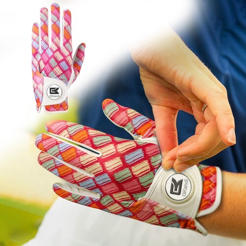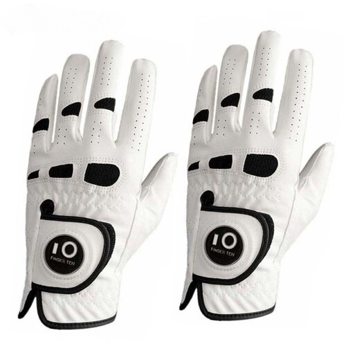 A SUPERB QUALITY GOLF GLOVE WITH A STRONG MAGNET ON THE CLOSURE FLAP WHICH WILL TAKE ANY FLAT GOLF BALL MARKER.