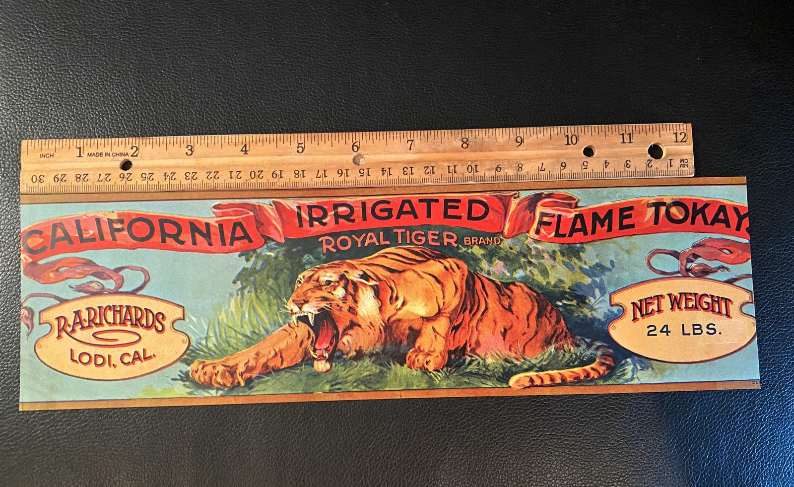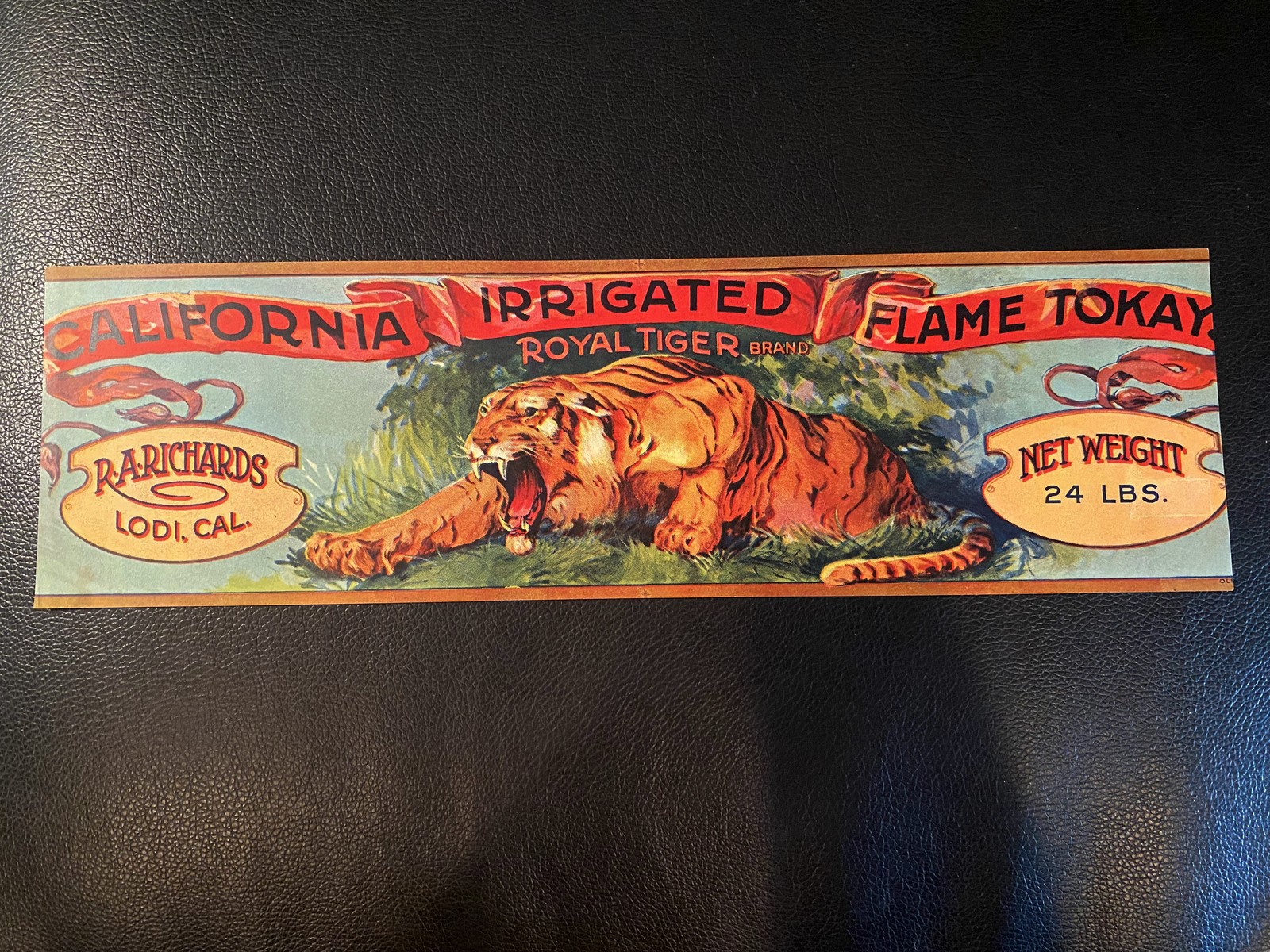 1920's - ROYAL TIGER - Grape Crate LABEL - R.A. Richards - Lodi CA.
