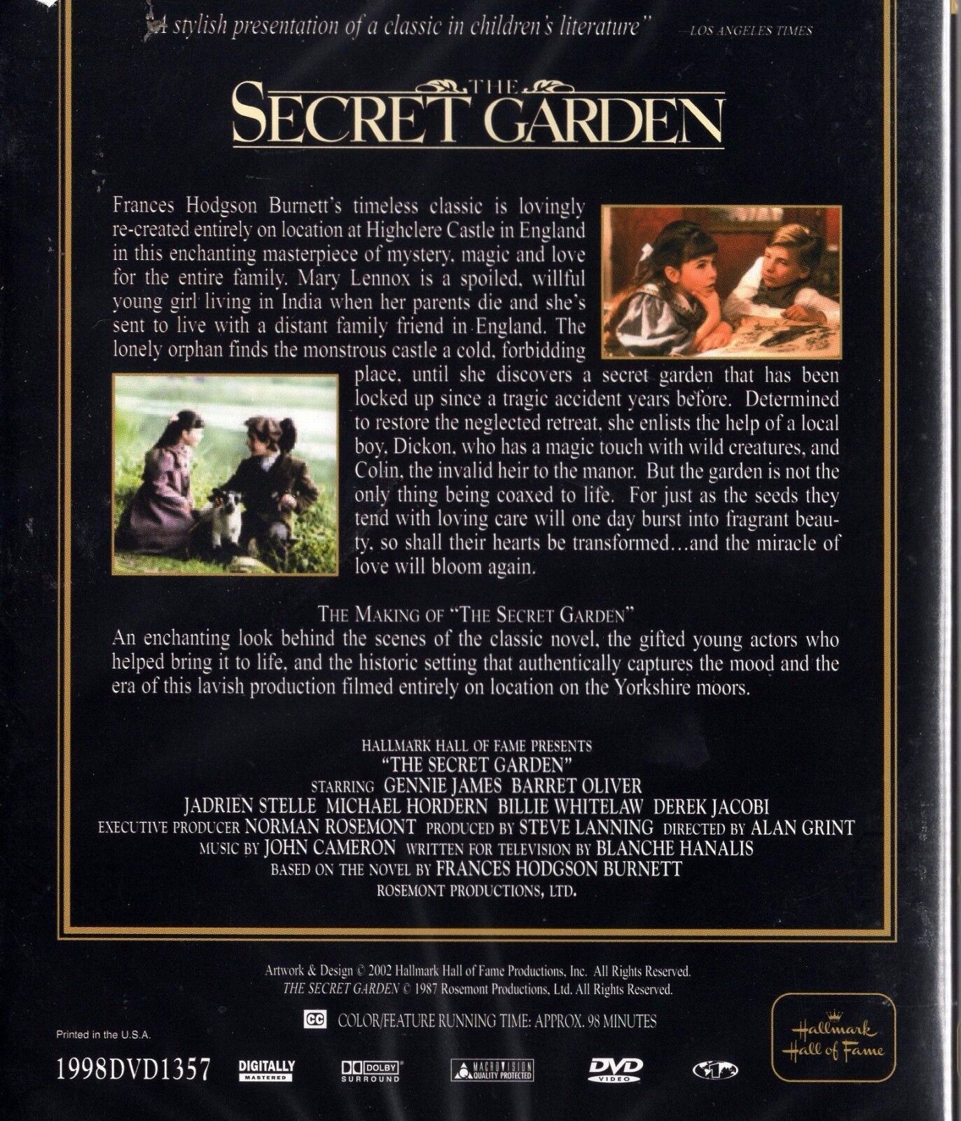Based on the novel by Frances Hodgson Burnett. Originally broadcast in 1987. Gennie James, Barret Oliver, Jadrien Stelle, Michael Hordern, Billie Whitelaw, Derek Jacobi. After the sudden death of her parents, Mary Lennox is sent from their home in India to the English estate of a distant family friend. Sad and lonely, her only interest lies in a secret garden, abandoned after a tragic accident occurred there. With the help of a local boy and Colin, her guardian's invalid son, Mary's spirit is reawakened as they bring the garden back to life.