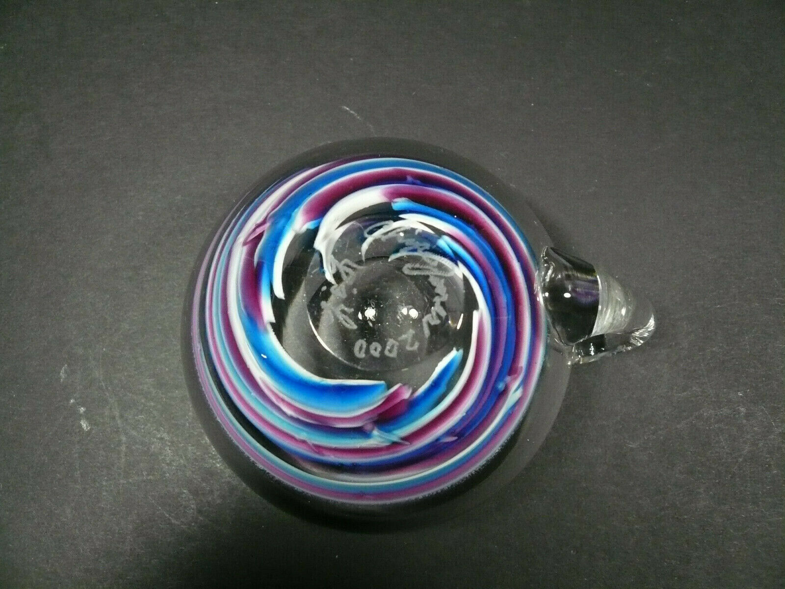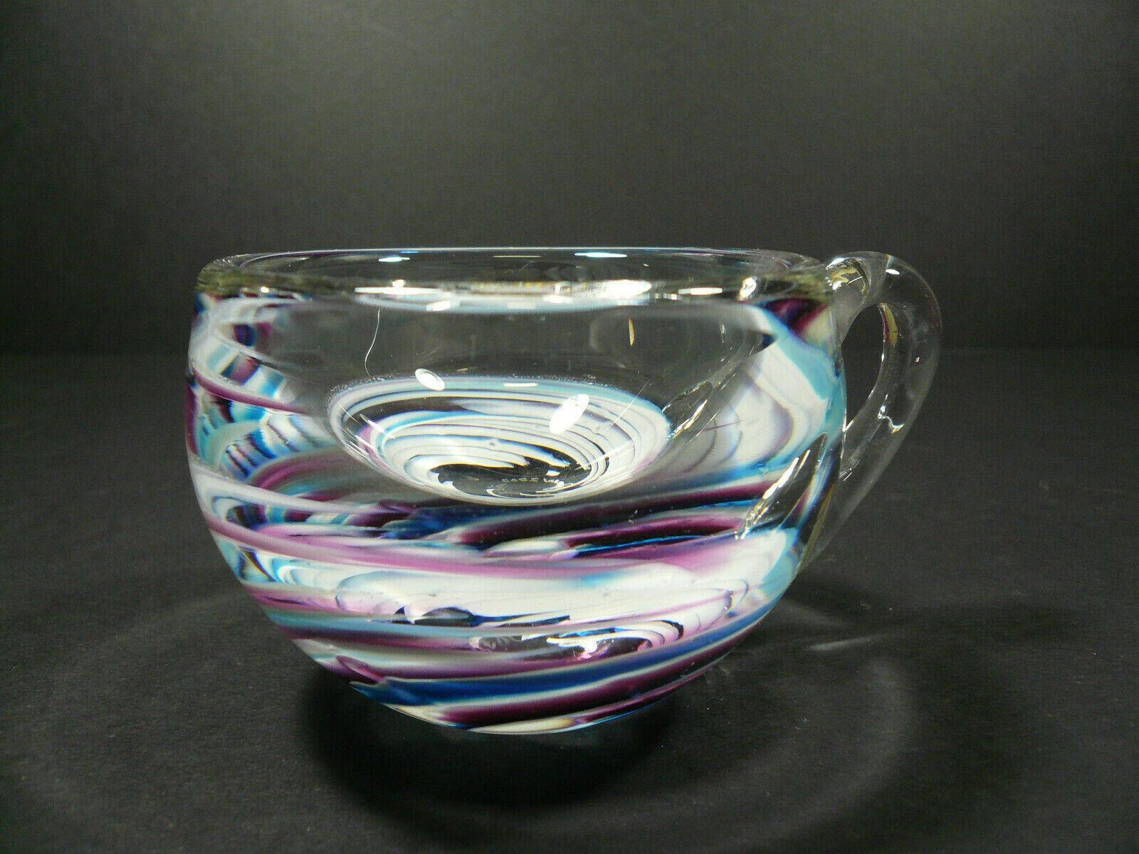 Studio Art Glass Cup Handcrafted Handmade Swirl Pattern Signed L&L Chip James