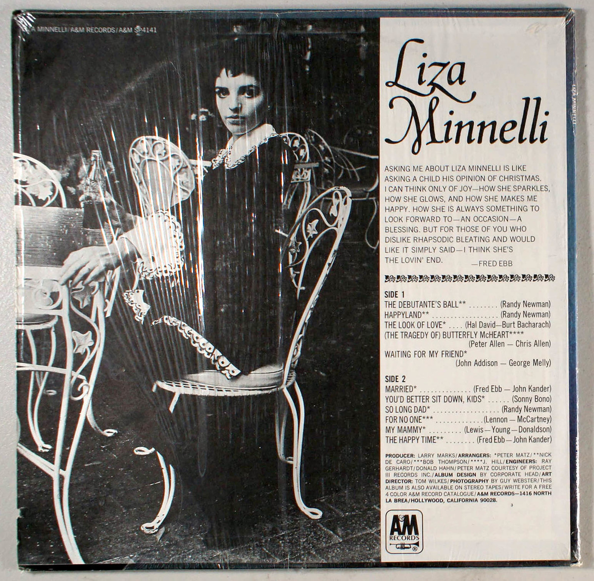 Liza Minnelli is an energetic collection released in 1968. This record captures an ebullient artist four years before her success in Cabaret. The album contains a solid collection of songs by famous singer/songwriters, including three by Randy Newman (The Debutante's Ball, Happyland, and So Long Dad) and one from John Lennon and Paul McCartney (Revolver's For No One). One of the standout tracks is The Look of Love, written by the team of Hal David and Burt Bacharach. Interesting, too, is the inclusion of (The Tragedy Of) Butterfly McHeart, written by Minnelli's then-husband, Peter Allen, and You'd Better Sit Down, Kids, written by Sony Bono. A good mixture of Broadway numbers and singer/songwriter material.
