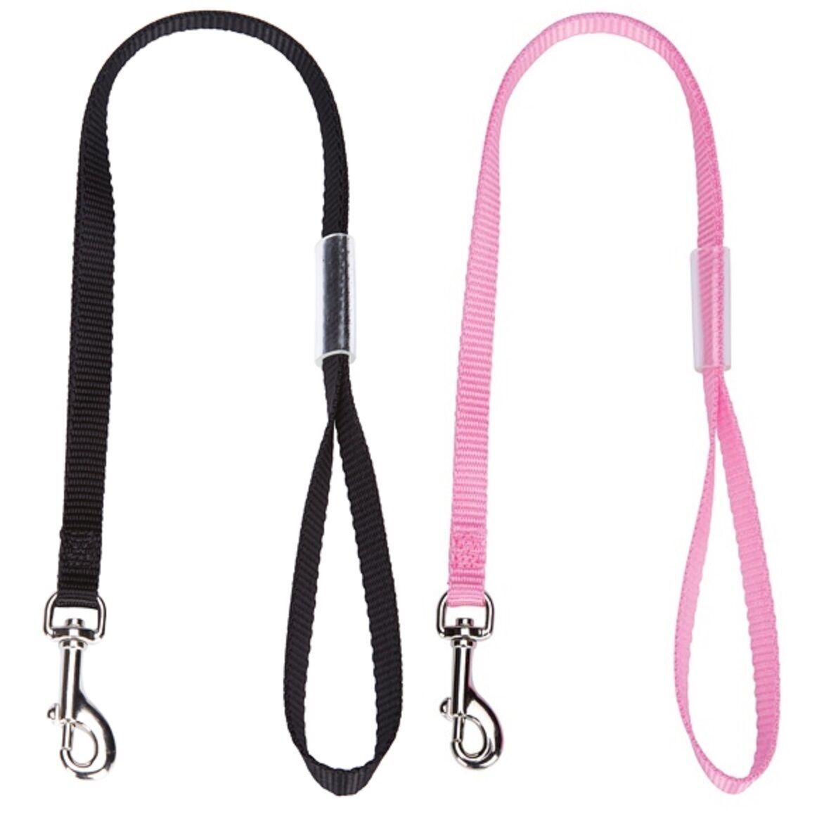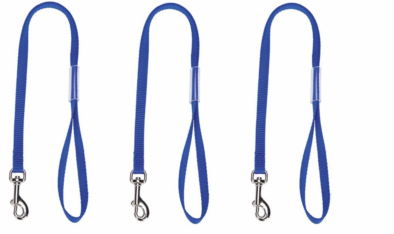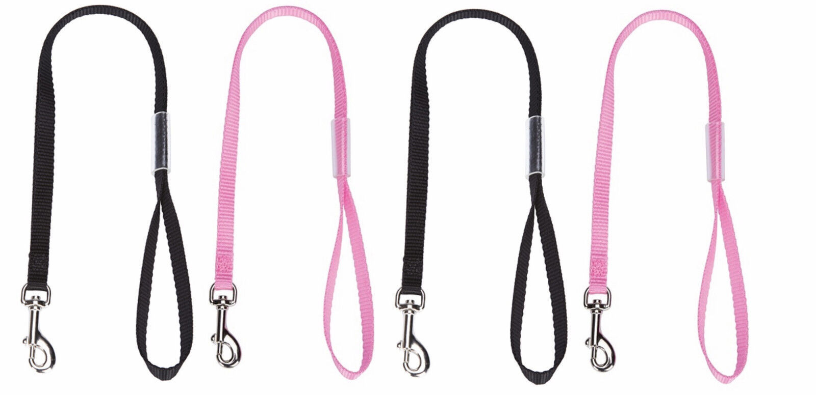 Strong, durable 3/8" wide nylon Grooming loops have plastic slides that stay in place?won?t tighten or loosen on restless animals. Swivel snaps at top. 18" long.