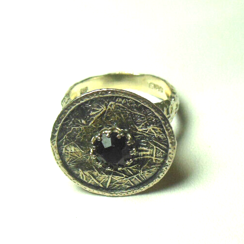 Signed ISRAEL 925 Sterling Silver Garnet Ring Textured