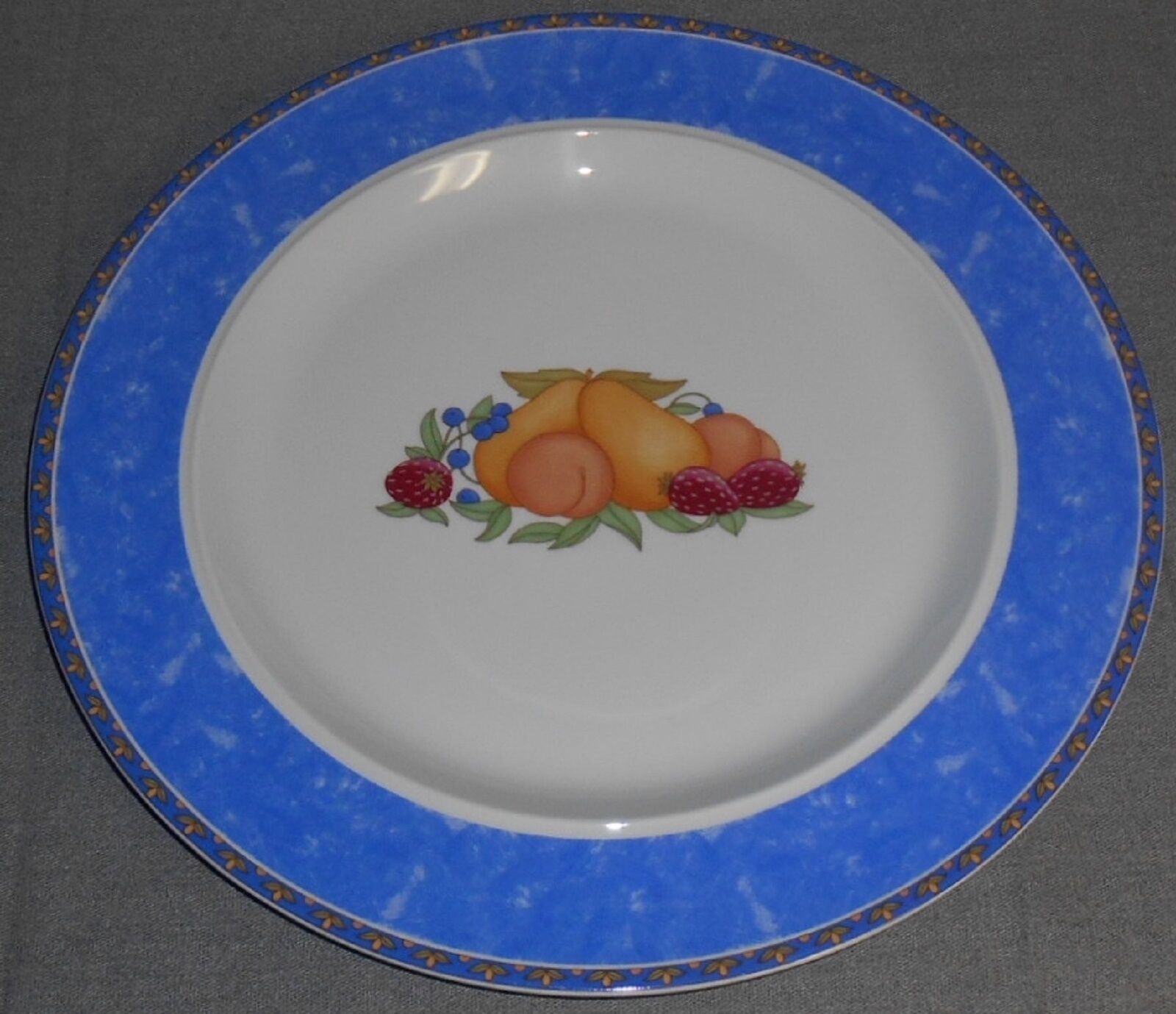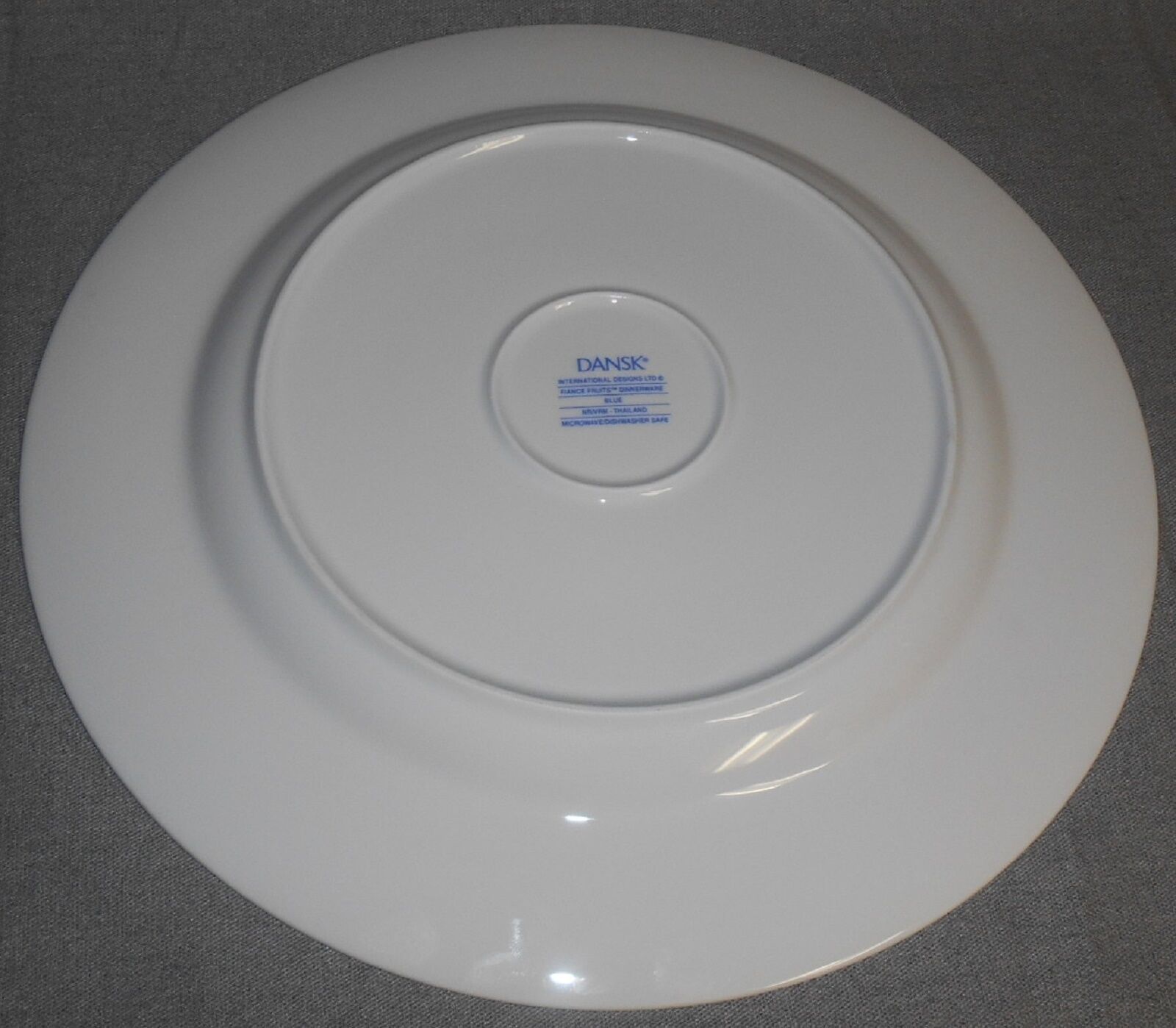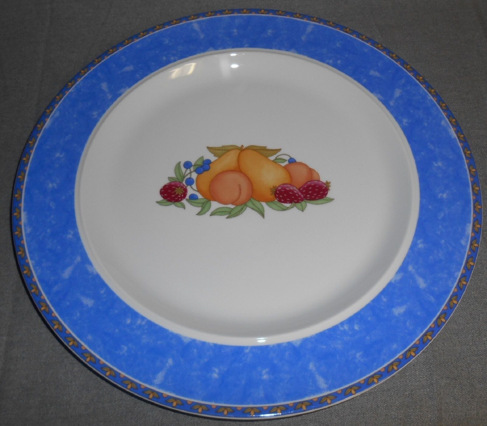 This is the 13 3/8" Chop Plate or Platter from Dansk in the Fiance Fruits Blue Pattern. It is in good pre-owned condition with no chips or cracks..some light surface usage present.