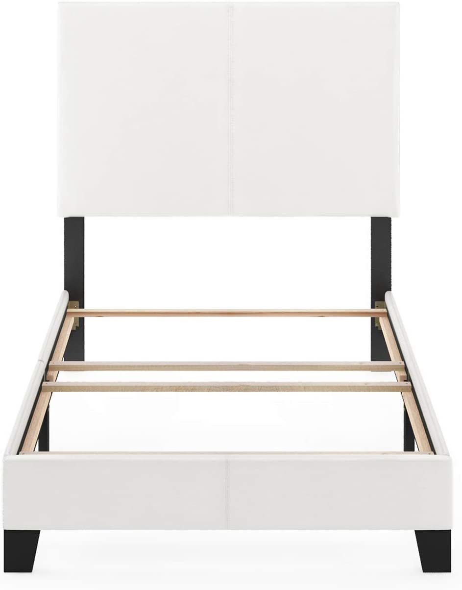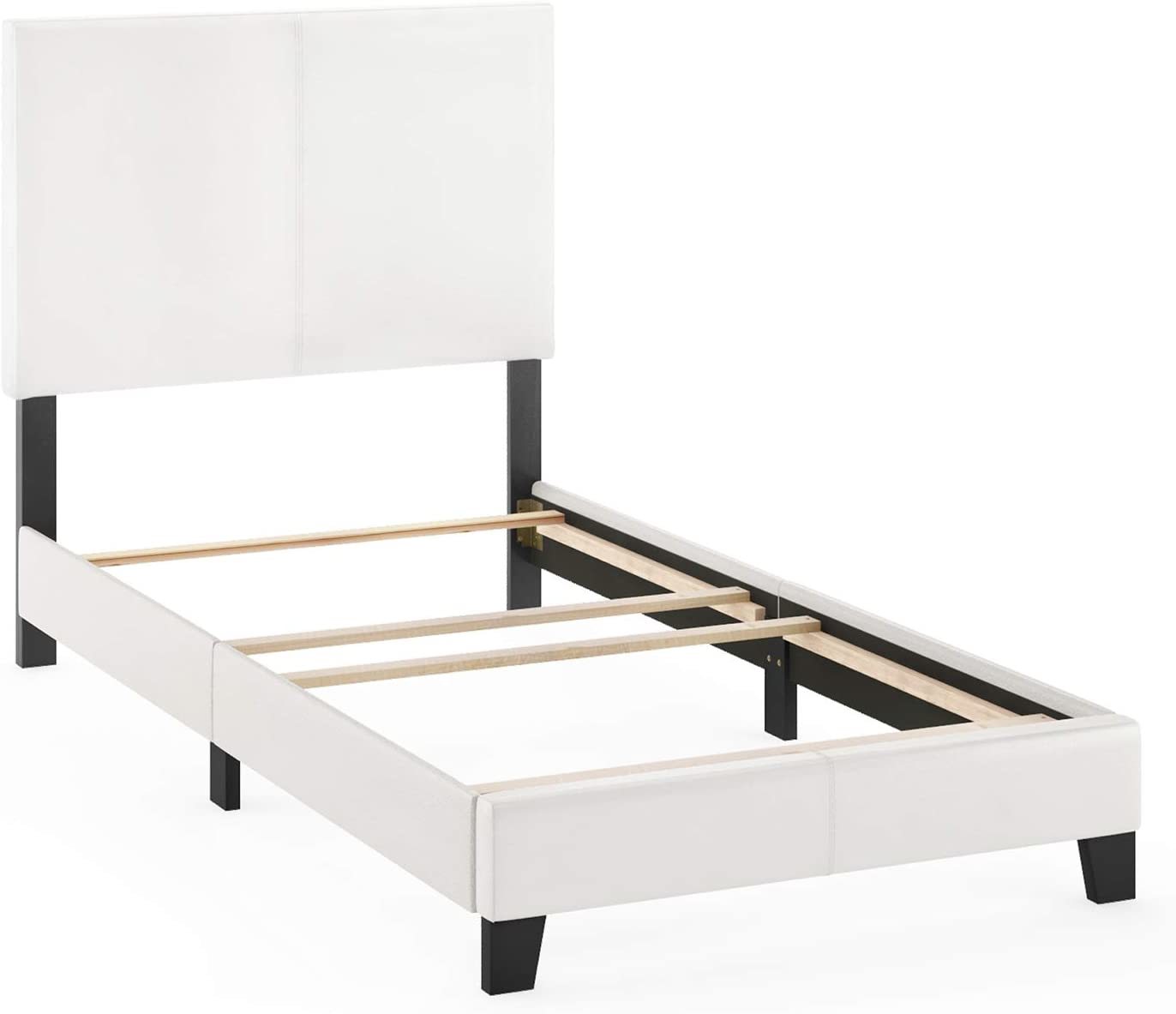 White Pessac Pu Leather Upholstered Platform, Twin, Furinno Fb19821Twh.