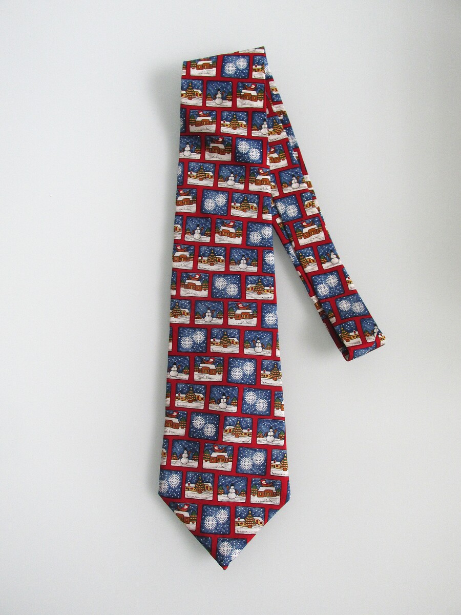 Description: Up for sale is a Save The Children men's Christmas scene silk tie. These ties are handmade in the USA of 100% silk. It has a multicolored "Scenes of Christmas" design. Please see the photos for better print and color depiction. Dimensions are approximately 56" long x 3.90" wide. This tie is in excellent condition.