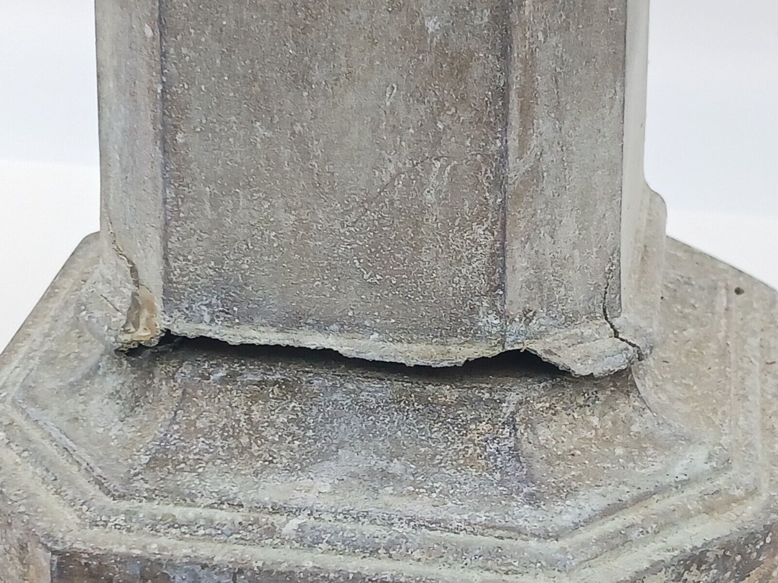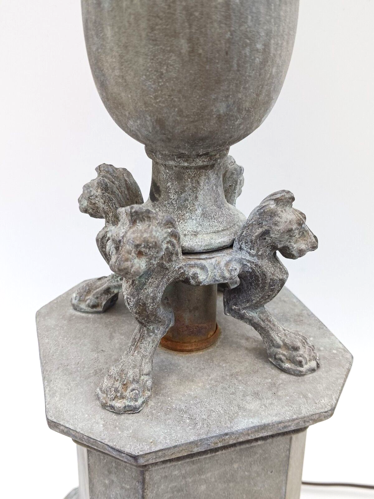 Antique lamp which is in need of repair. Part of the bronze has broken off (see pics) Would make a good project for someone to restore.