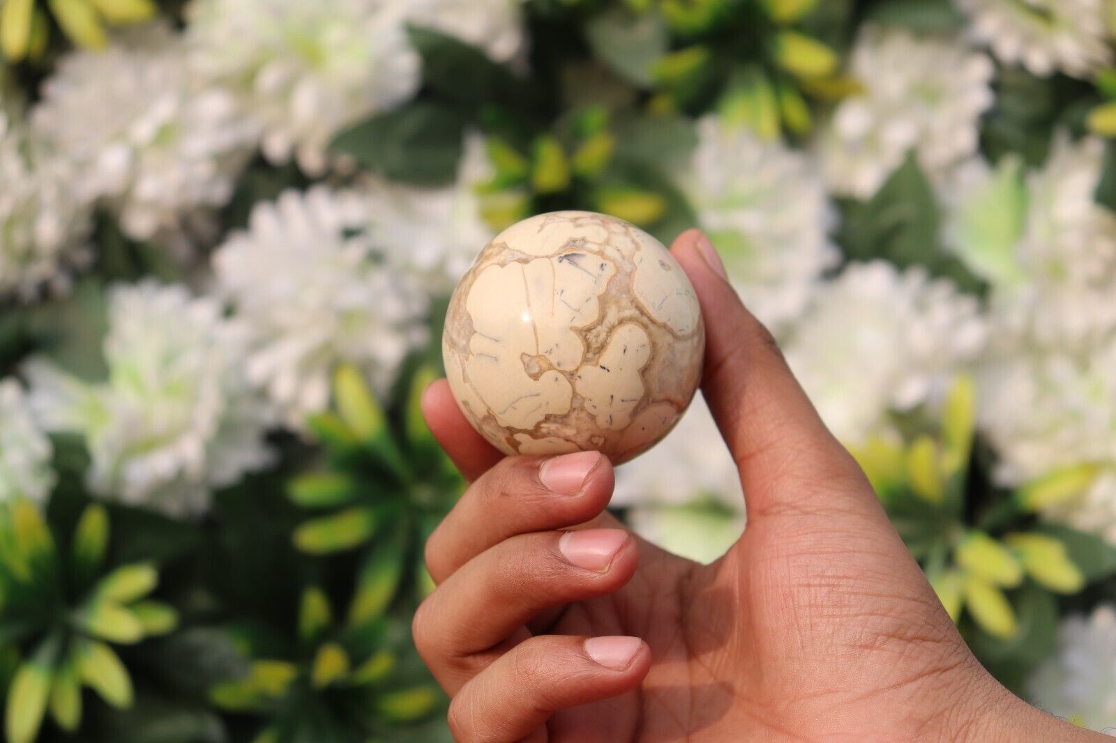 Made from natural Cobra Jasper crystals, each sphere ball has its own unique pattern and coloration, adding to its charm and beauty.