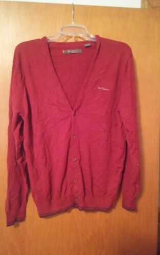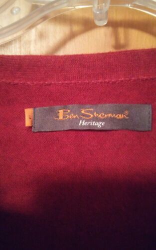 000 Mens Ben Sherman Heritage Long Sleeve Red Large Button Front Vee Neck V