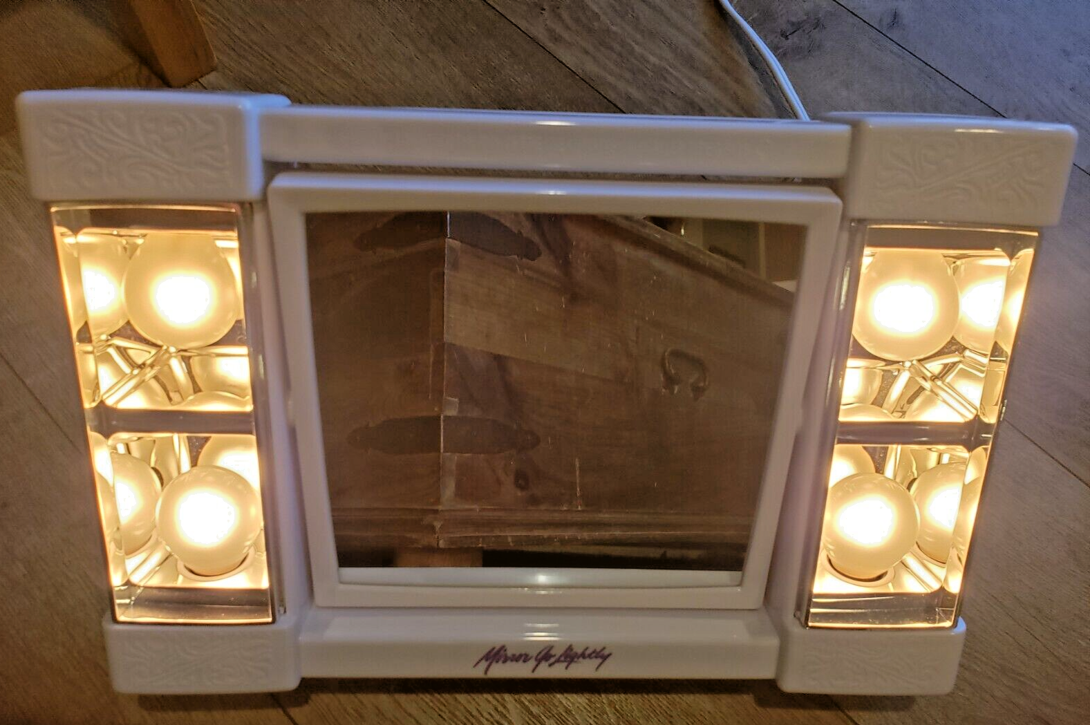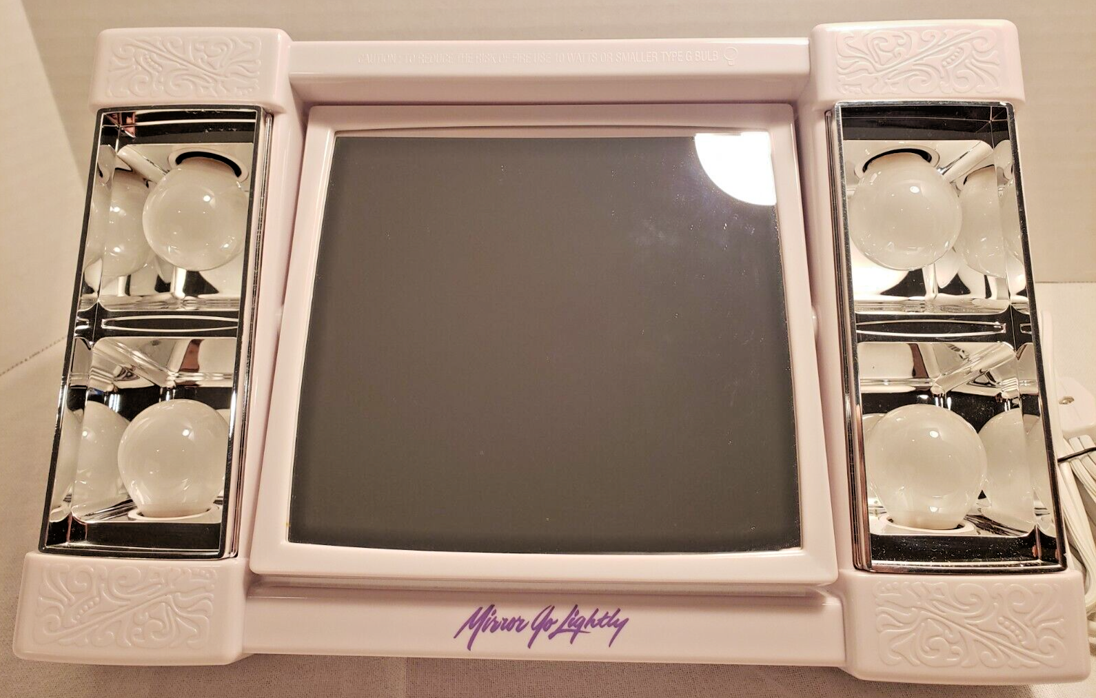 Mirror measures 6.5" X 6". Power cord measures 63".
