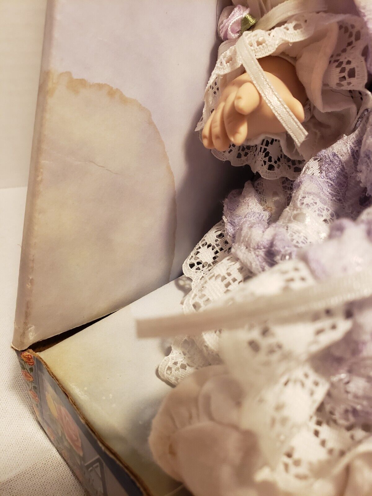 Collectors please note: there is a water spot on the side-front corner of the left side of the box when looking at it. We truly almost didn't see it, but we always disclose everything we find. We find no damage from this on the doll itself, her clothes, or on the Authenticity Certificate. See last two pics. Priced accordingly.