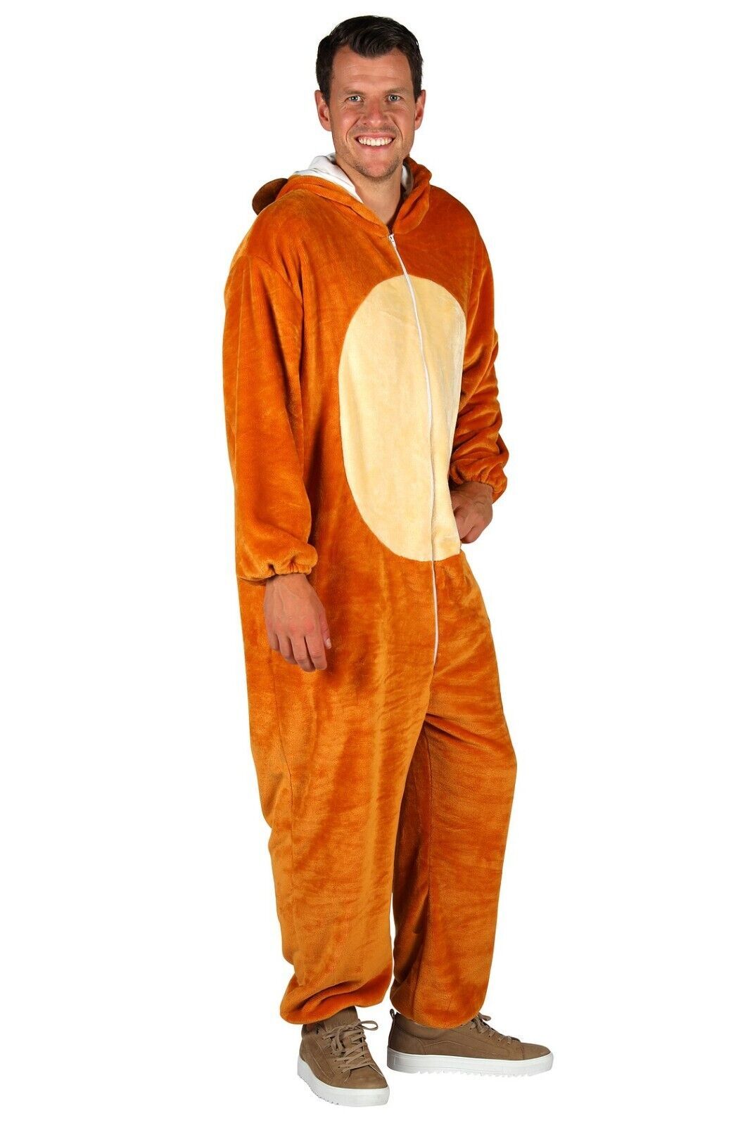 Unleash your inner animal with this deluxe plush lion costume. The outfit features elastic and stretch technology for a comfortable and flexible fit, perfect for any fancy dress occasion. Made in the Netherlands, this complete outfit showcases a gold colour scheme and a lion theme, making it a standout choice for anyone looking to make an impact.