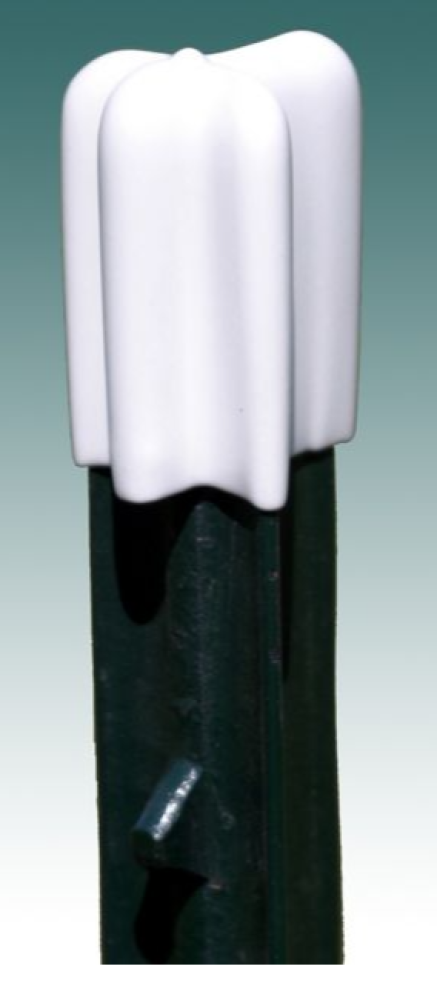 Great for a wide variety of uses, such as silt fences, barrier fences, tree stakes or anywhere the sharp tops of T-posts present a hazard Can be easily placed on T-posts without the use of tools Tough vinyl material is bright white to enhance visibility Elastic enough to adapt to a variety of post shapes and sizes; adapts when the end of a post is deformed during installation Fence post caps fit snugly to resist accidental removal During the manufacturing process, steel fence posts are sheared to length; this process always leaves sharp edges which can inflict anything from minor scratches to impalement Protects horses and other valuable livestock from life-threatening injury and unsightly scrapes UV stabilized so the T-post caps will last for years Comes in a one-size-fits-all design for convenience