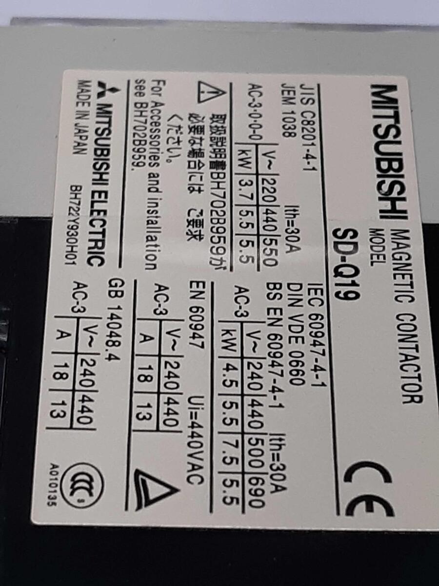 Mitsubishi Electric SD-Q19 Magnetic Contactor, 440V 30Amp up to 7.5kW