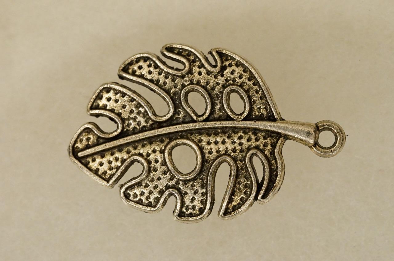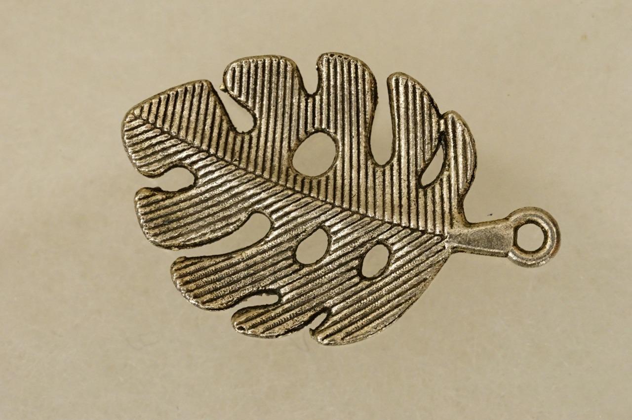 Vintage Costume Jewelry Monstera Leaf Necklace Pendant Silver Tone Metal 1.25". Smoke and pet odor free. Ready to hang on your favorite chain or work into your own creation.