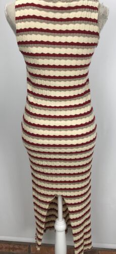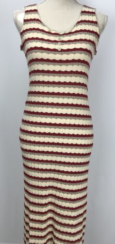 Spike & Nina Women's Size M Ribbed Striped Sweater Dress Burgundy Gray Beige