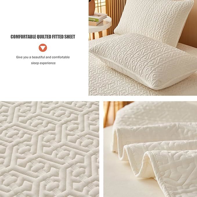 Anyhouz Mattress Cover Beige 90x200cm Pure Cotton Soft Quilted Bed Sheet Anti-ba