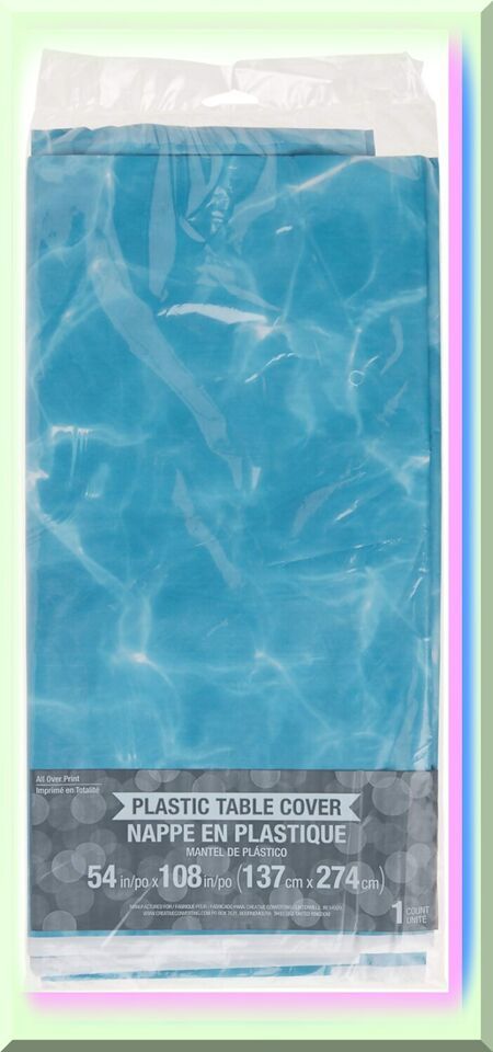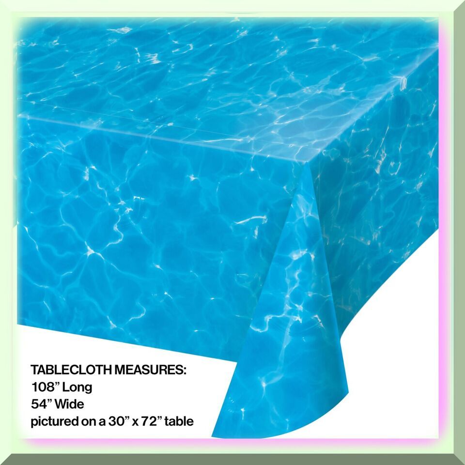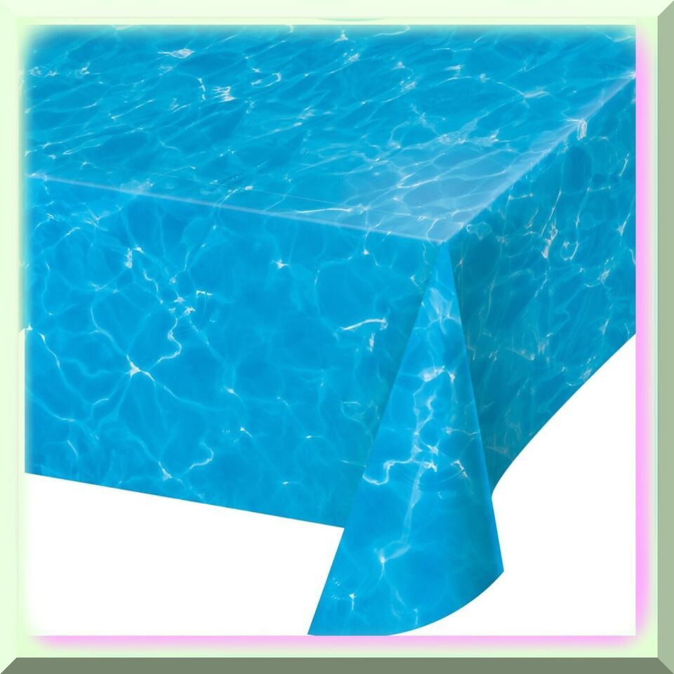 A) Alluring Design: Our plastic table cover boasts a captivating all-over print that is sure to catch the eye. With a decorative pattern resembling a serene blue pool of water, it adds a touch of elegance and charm to any occasion. Whether you're hosting a summer pool party or a themed event, this table cover is the perfect choice to create a visually stunning atmosphere.
