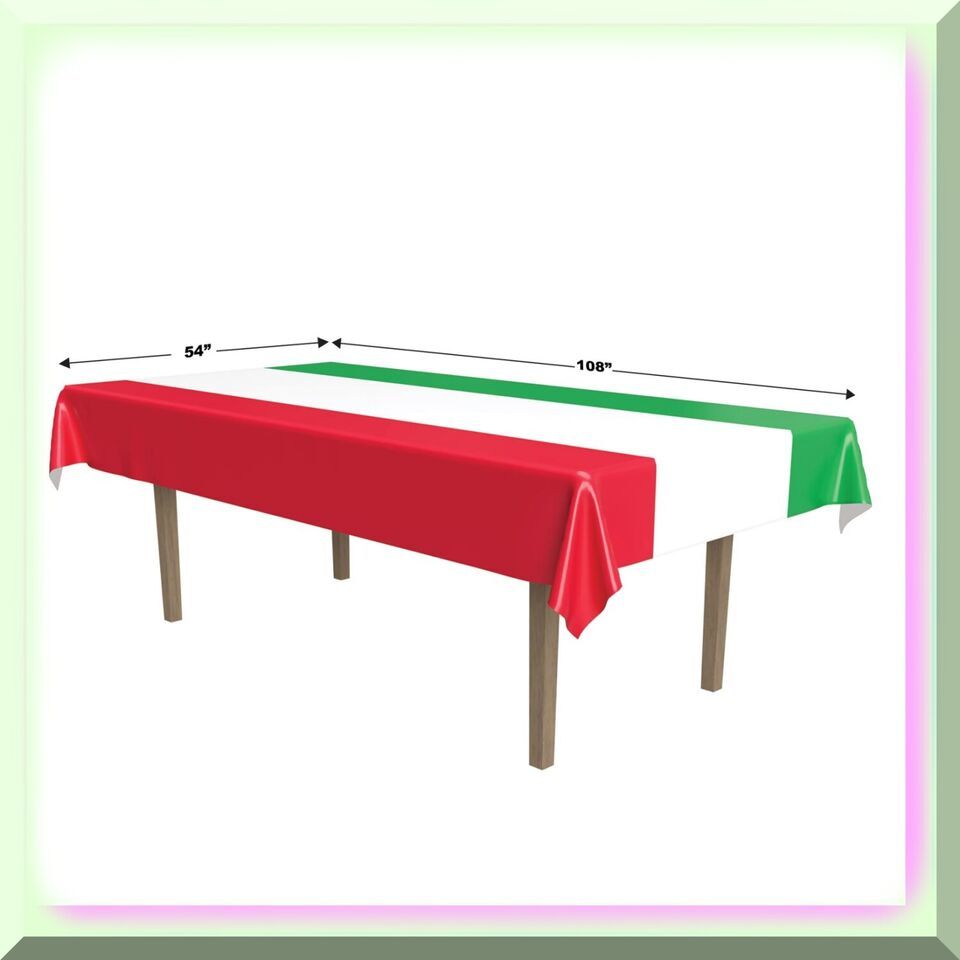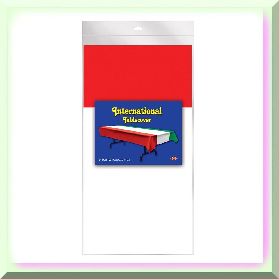 Get ready to elevate your international celebrations with the vibrant and durable International Tablecover! Measuring 54" x 108", this plastic tablecover is designed to fit most standard tables, protecting them from spills and stains. The bold red, white, and green stripes design adds a festive touch to any international party, impressing guests with its bright colors. And the best part? It's disposable, making clean-up a breeze! Perfect for sports-themed parties, picnics, Italian-themed parties, and more, this tablecover adds a pop of color and fun to any event. Pair it with other international-themed decorations for a complete party atmosphere. Celebrate life's events with our wide range of Novelty Items and Party Supplies, adding a pop of color and extra spice to any occasion. With over 8,000 products for nearly any event or theme, our mission since 1900 has been to create high-quality products using the finest materials. Let's celebrate together!---FEATURES:---1. Vibrant Design: Immerse yourself in a kaleidoscope of colors with our International Party Decorations. The striped plastic table cover and party decor boast a vibrant design that will instantly transport you to a world of celebration and cultural diversity.