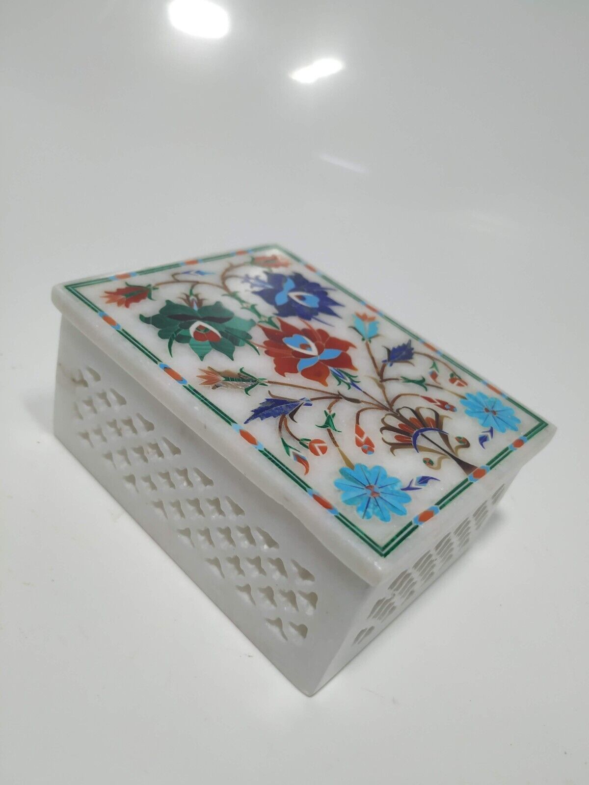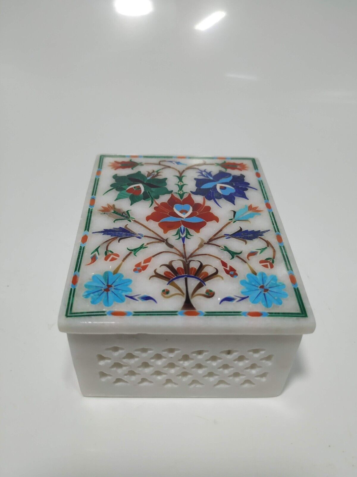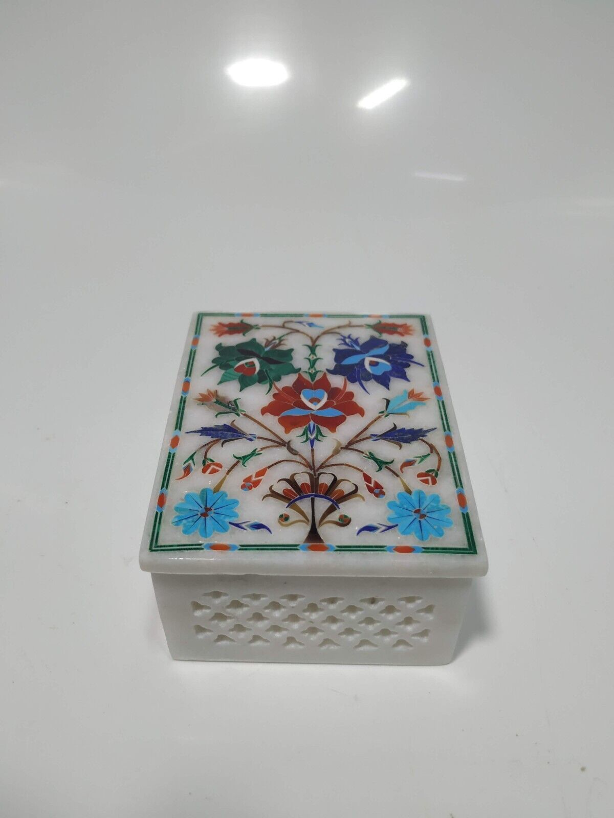 Filigree Work Trinket Box for Her White Marble Rectangle Shape Accessories Box