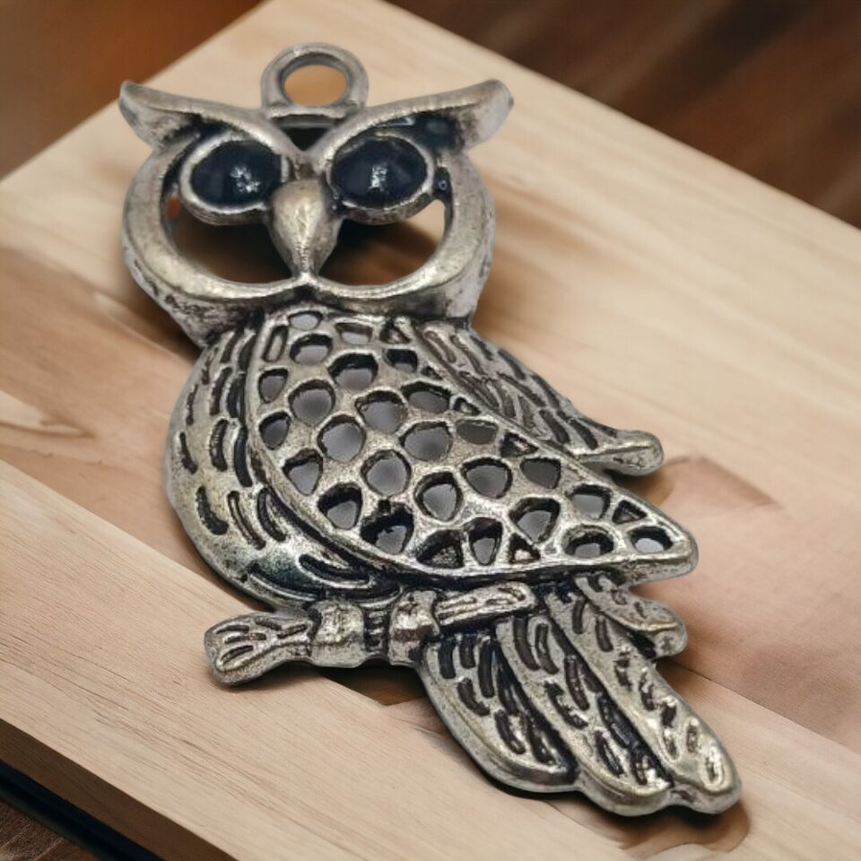 Silverstone Owl Pendant, Black Rhinestone Eyes. Condition is Pre-owned. Shipped with USPS Ground Advantage.