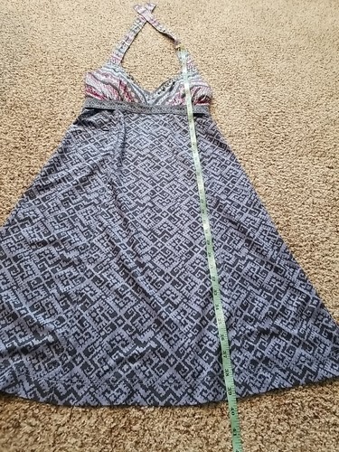 This Athleta sundress is the perfect addition to your summer wardrobe. The halter neckline and knee-length dress make it suitable for any occasion. The dress features a zip closure, making it easy to slip on and off and the colorful multicolor pattern will brighten up any room. It is machine washable, making it easy to care for and maintain. Get ready to pack and go anywhere in this stunning dress!