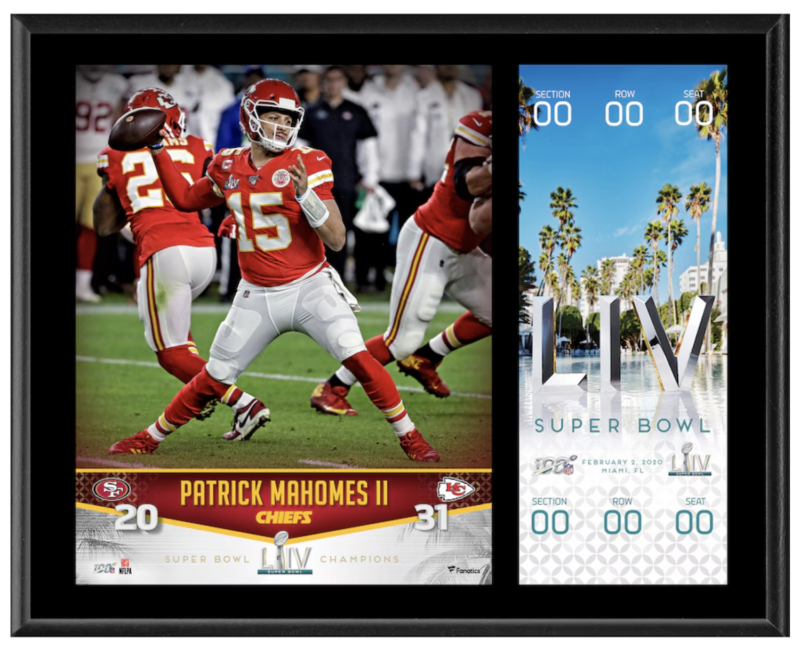 Patrick Mahomes Kansas City Chiefs 12" x 15" SB LIV Champions Sublimated Plaque w/Replica Ticket Fanatics
