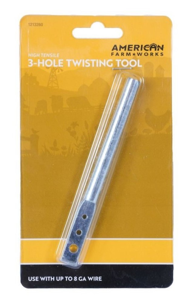 Designed for bending or twisting high tensile wire, poly spacer clips, or for twisting T-post or spacer clips to fasten wire on to posts 3-hole design of the fencing tool makes it compatible with up to 8 gauge wire Helps you bend and twist high tensile wire without pliers Turn a two-man job into a one-man job with this 3-hole wire twister