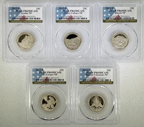 2012 America The Beautiful 24K GOLD PLATED Quarters Parks 5-Coin Set w/Capsules