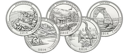 2014 America The Beautiful COLORIZED Quarters U.S. Parks 5-Coin Set w/Capsules