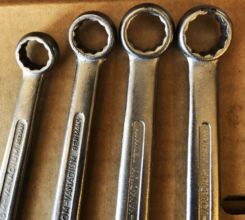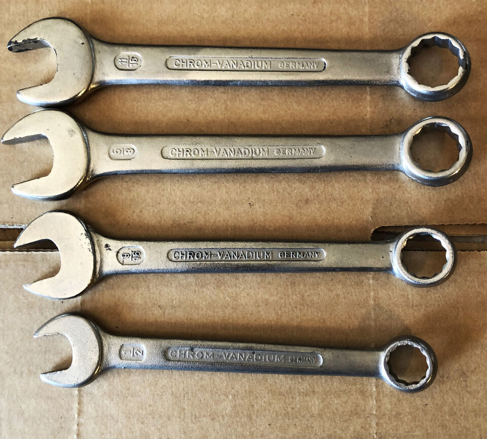 Vintage Chrom-Vanadium 4 pc Combination Wrench Set 1/2" -11/16" Made in Germany