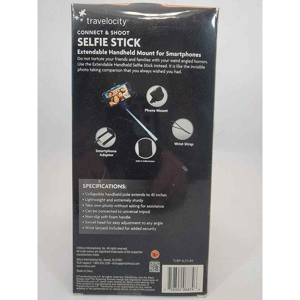 Travelocity Selfie Stick Connect Shoot Extra Long 43" Extension+ Mount Black