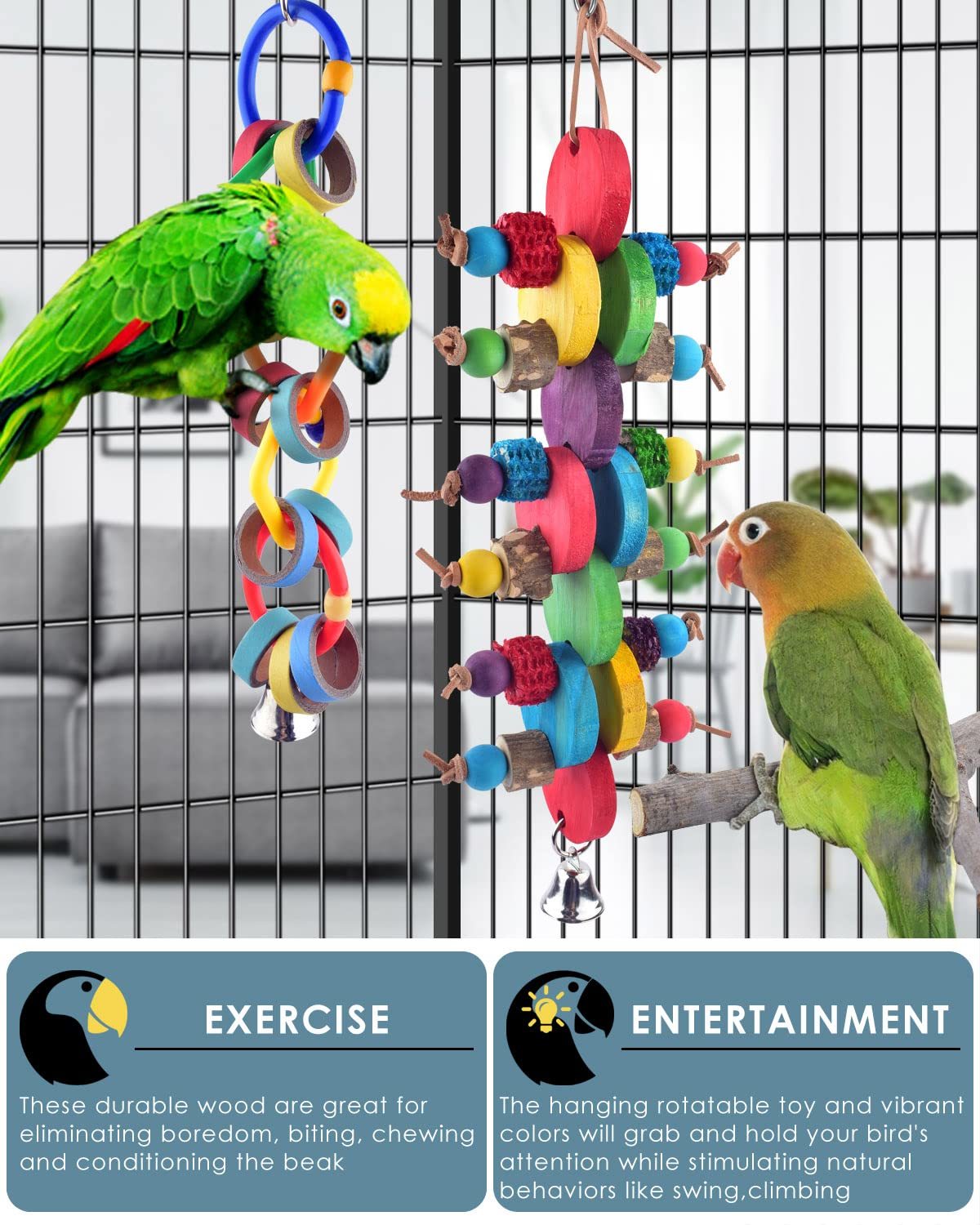 MULTIPLE BENEFITS: Parrot toys are designed not only for entertainment, but also to satisfy the instinctive drive of pet birds to chew to groom their beaks. Our hanging bird toys are a great choice for birds who like to chew and bite