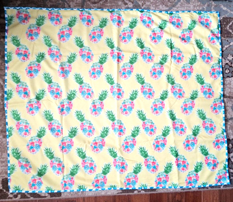 Pineapple Picnic Blanket Throw 50x60 ISAAC MIZRAHI Reversible Water Repellent