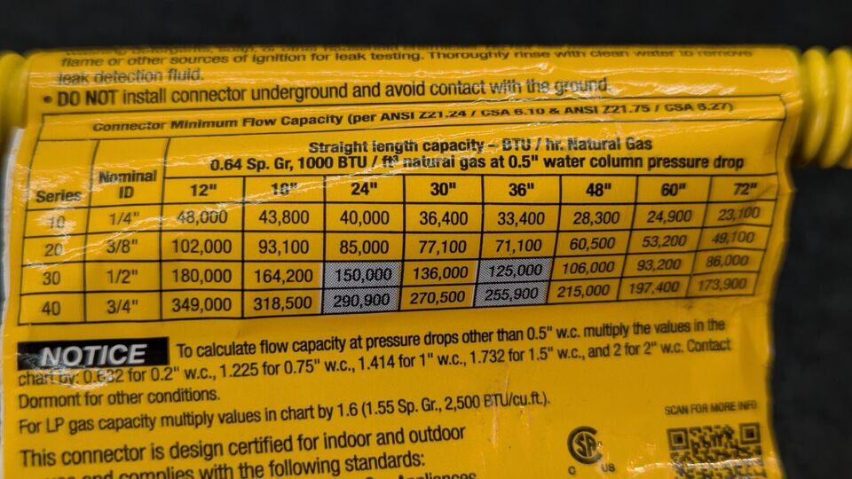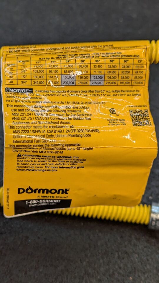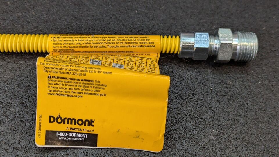 Dormont 3/8" OD x 24" Coated Stainless Steel Gas Connector, 1/2" FIP x 1/2" MIP