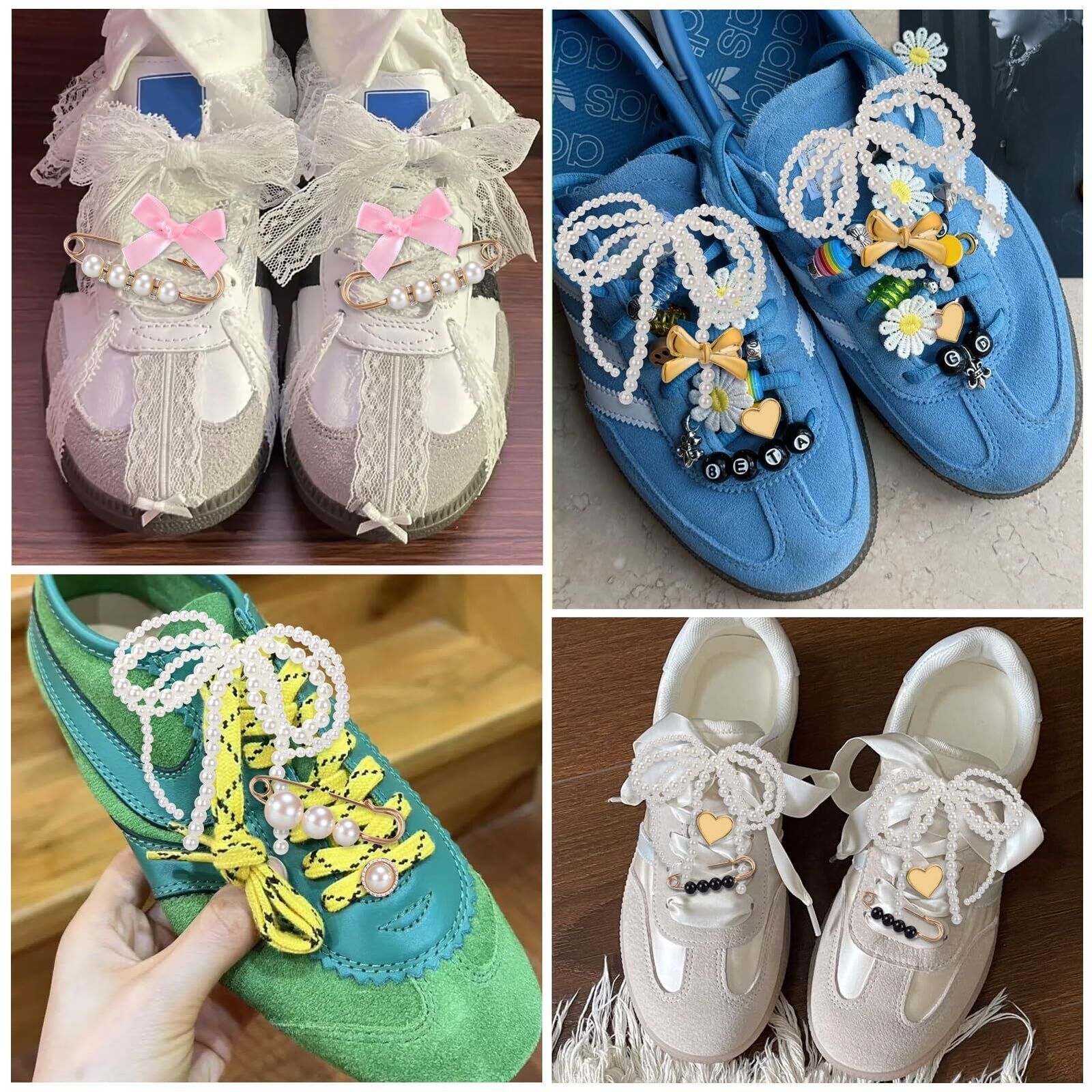 BABORUI 30Pcs Charms for Shoe Socks Pearl Bow Brooch Pins Shoe Charms for Sneakers Shoelace Junk Socks Charms Kit Bulk for Womens Shoes DIY Decorations