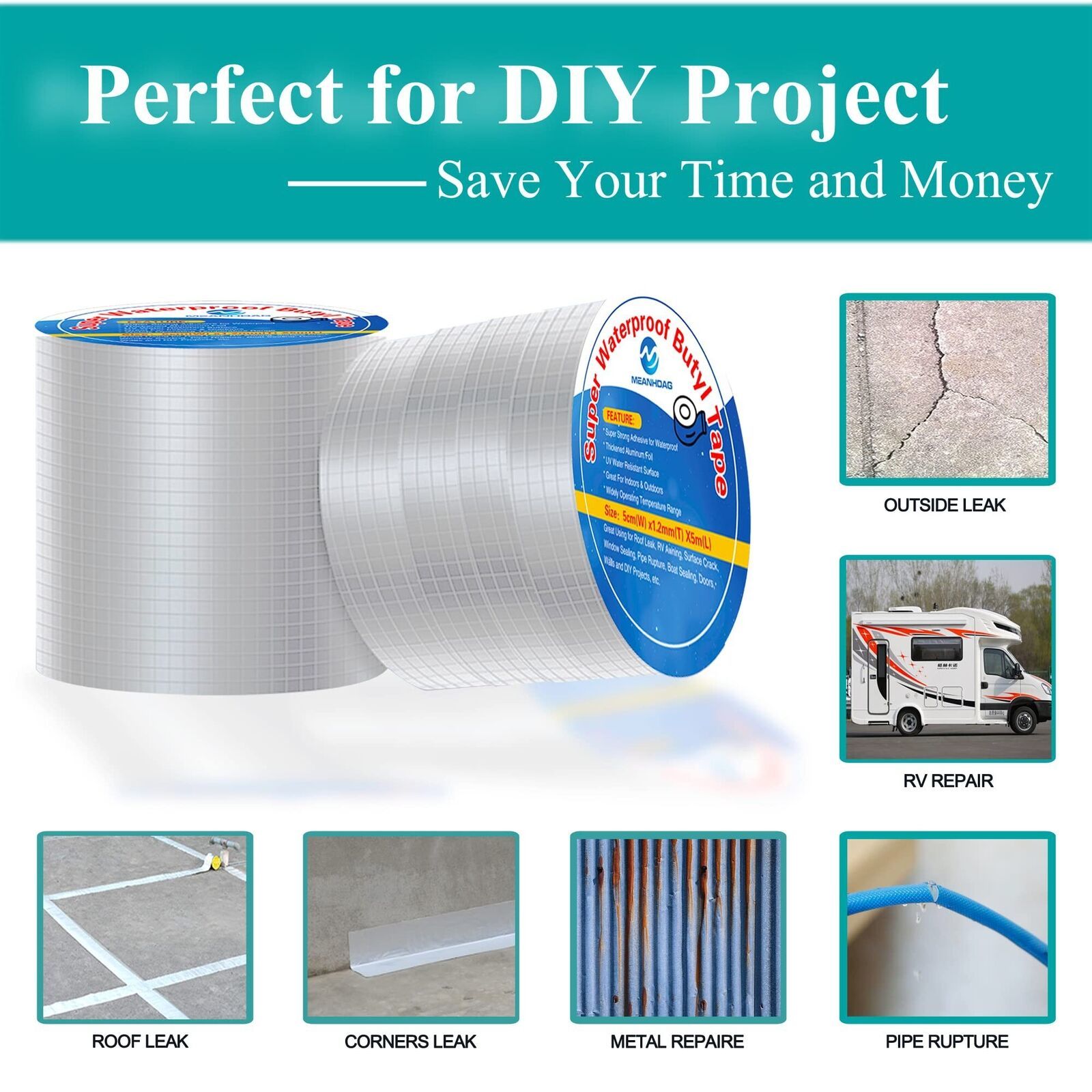 MEANHDAG Super Waterproof Butyl Tape and Patch for Seal Repair, Adhesive Duct Ta