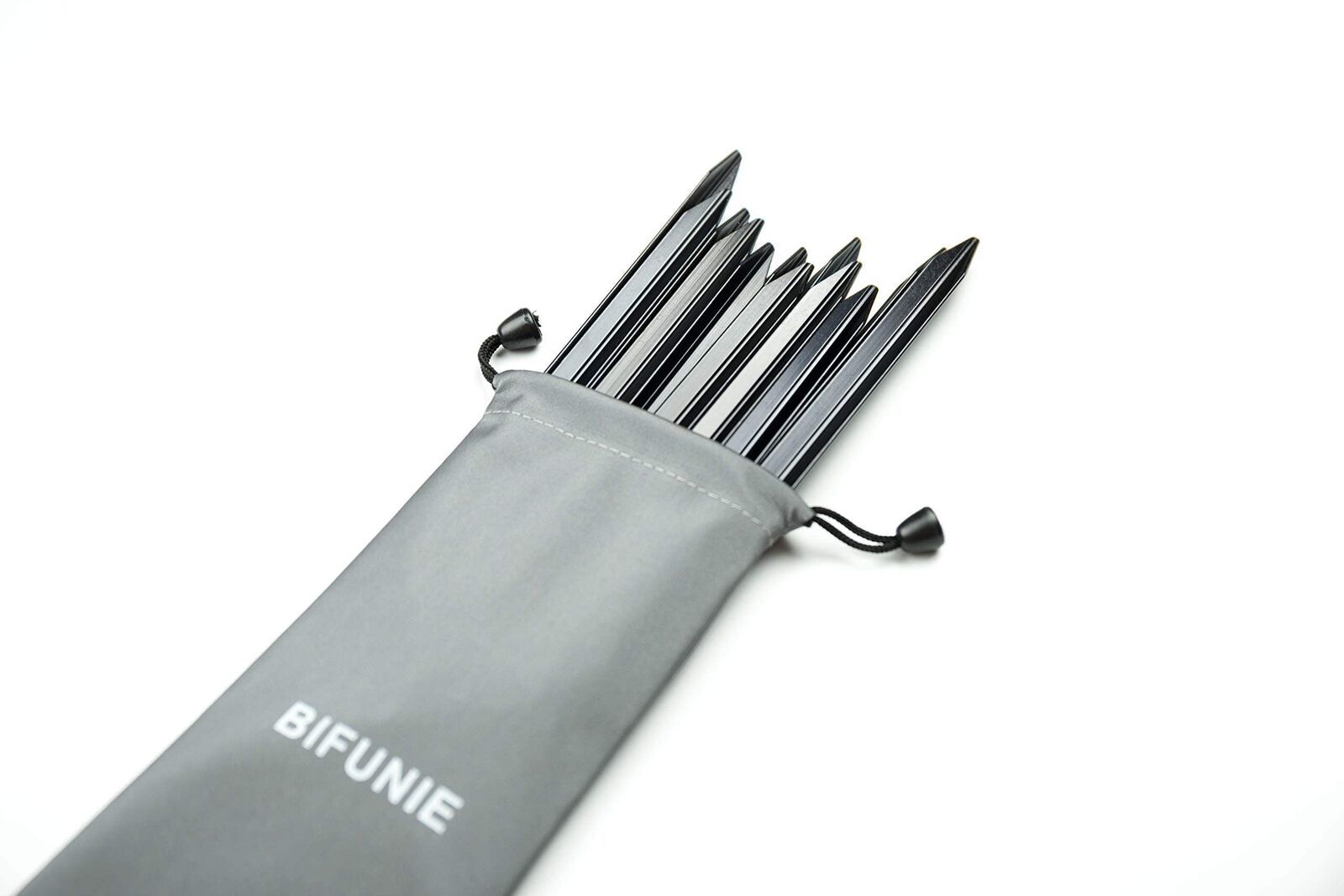 Color: BlackFeatures: Lightweight: 7075 aluminum ultra-light three-sided aluminum tent stakes; The Length of the stakes: 7 inch; Package Included:: 12Pcs tent pegs with reflective pull cords + 1pcs carrying pouch; Design: Coated with 3 notches in the top of the rod and 3-sided extruded aluminum stakes for secure anchoring; Be carefully when pushing the stake into the ground; Holding Ability: Tent pegs are used to help maintain the tent's shape, and to hold the tent in place against wind; Using these tent stakes in a wide range of soil conditions; Not suitable for using in the rocky ground or in frozen ground; Versatile Stakes: Great for setting up tents and awnings at the beach or backyards; Great for anchoring outdoor tents, tarps, hammocks and canopy in most soil conditions; Details: Feature: Length: 7 inch; Ultra-light; Three-sided rod; Material: 7075 Aluminium alloy material; Aluminum Tent Stakes Design: Coated with 3 notches in the top of the rod and 3-sided extruded aluminum stakes for secure anchoring; A rope-stringing eyelets on the top end of tent pegs by connecting to ropes for loosening or pulling the tent peg from the ground; Great Holding Ability of Stakes for Tents for Camping and Hiking; Aluminum tent pegs with hooks by connecting to ropes attached to the tent, are pushed or driven into the ground for holding a tent to the ground; Tent pegs are used to help maintain the tent's shape, and to hold the tent in place against wind; Stakes for Outdoors Decorations Secure your ground tarp very well; Keep the Christmas / Halloween inflatables from blowing; Package Included: 12* tent stakes with pull cords; 1* tent peg carrying pouch;Package Dimensions: 12.0 x 3.2 x 0.7 inches