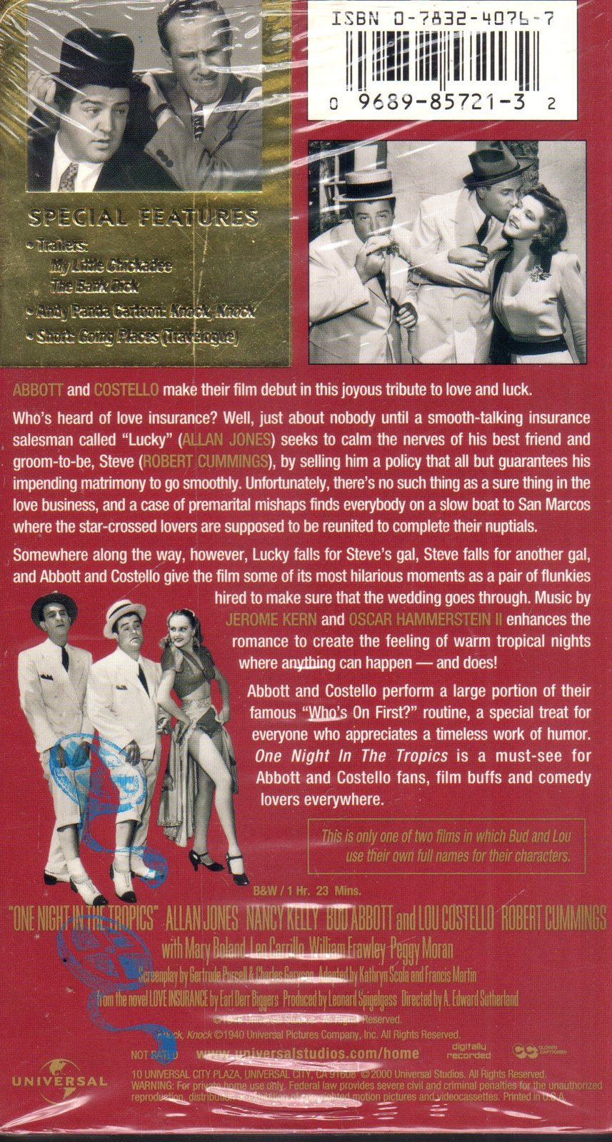 One Night in the Tropics VHS Video Bud Abbott & Lou Costello |