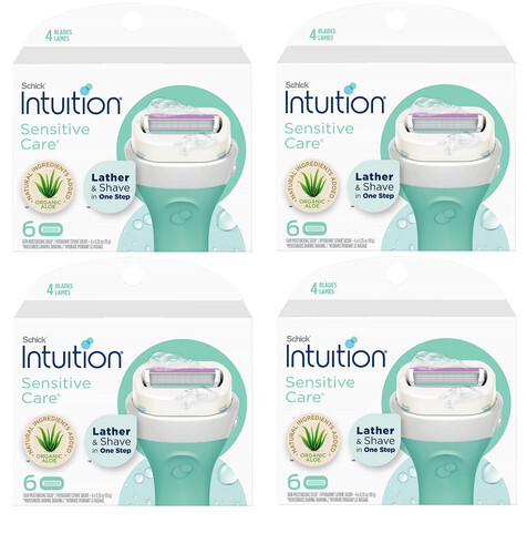 Schick Intuition Sensitive Care Razor, Comes with (2) Cartridge Refills and (1) Travel Cup, Organic Aloe