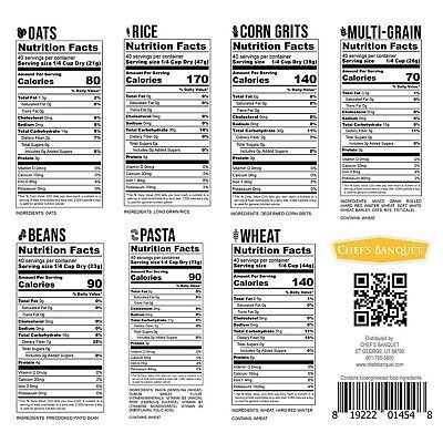 of items (Oats, Rice, Corn Grits, Multi-Grain Cereal, Beans, Pasta and Wheat)
