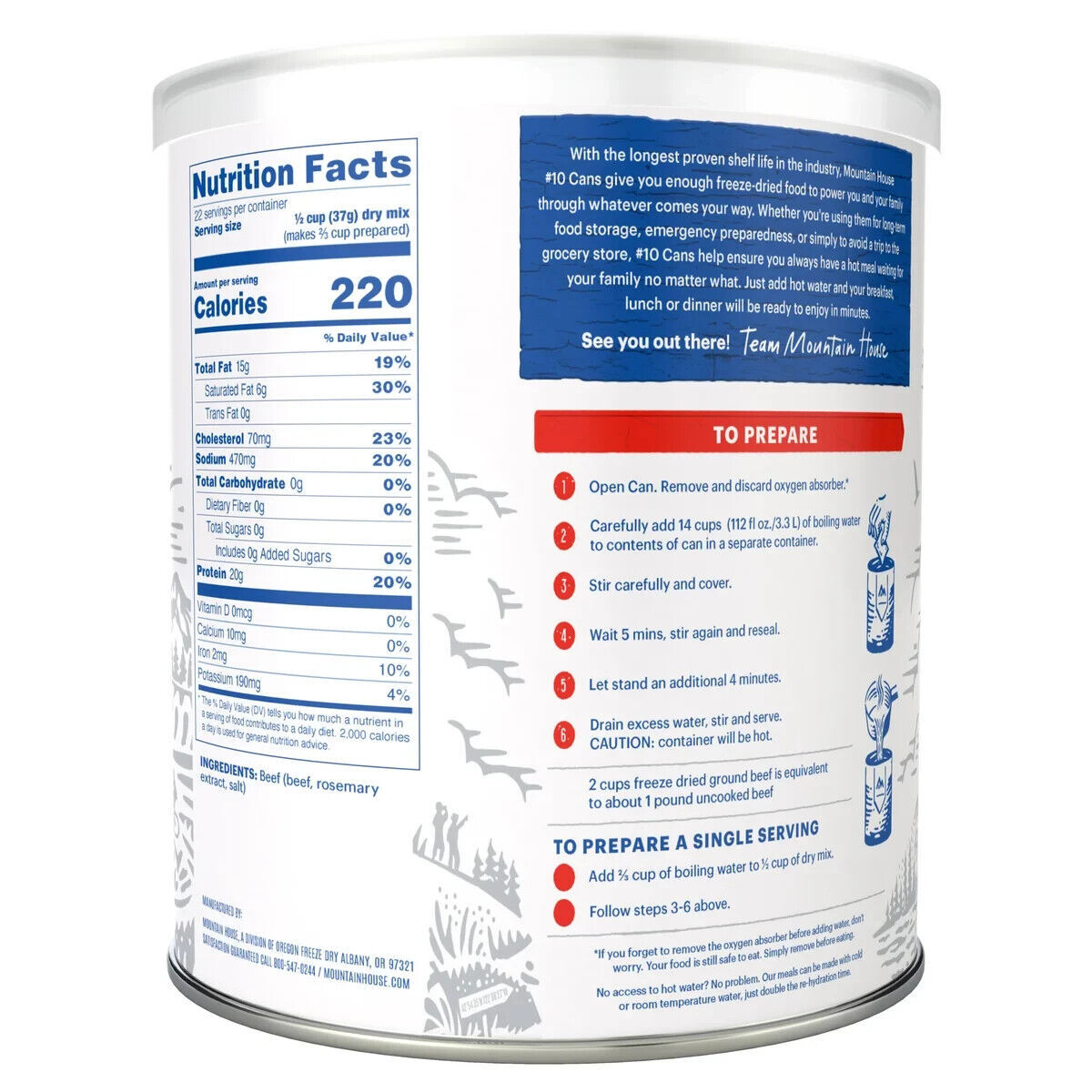 With just-add-water preparation and no-mess cleanup, Mountain House is not only the perfect food for camping, backpacking, or emergencies, but also makes a delicious and quick meal for your busy life.