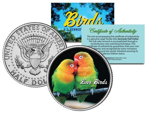 This COLLECTIBLE BIRDS SERIES ? MALLARD coin is a treasured collectible, combining the popularity of birds with coin collecting. Here is your chance to own a beautifully colorized JFK Kennedy Half Dollar U.S. Coin. This high-quality genuine Legal Tender U.S. coin has been colorized using a unique painstaking multicolor authentic process by the Merrick Mint. Colorizing coins involves the unique application of special inks directly to the surface of a coin that achieves a level of detail, color saturation, and durability that is #1 in the coin industry. The result is an everlasting colorized coin collectible of ultra-high quality. Each coin comes in a premium coin capsule with a Certificate of Authenticity to guaranty that your coin is authentic and recognized by every monetary authority around the world, assuring its Collector Edition status. The Kennedy half dollar is a U.S. fifty cent coin with coin year and mint marks chosen at random.